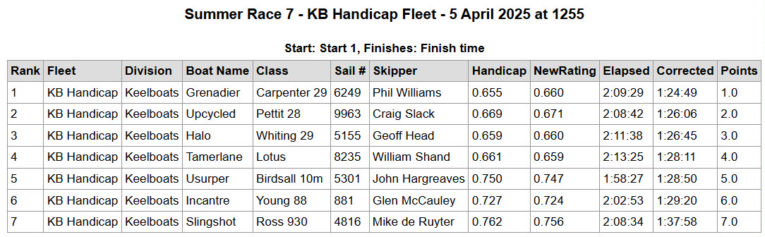 The keelboats race course was announced as, Start – Mark #5 Somes – Mark #12 Ward – Finish, with on-the-water start at 1300 hrs.