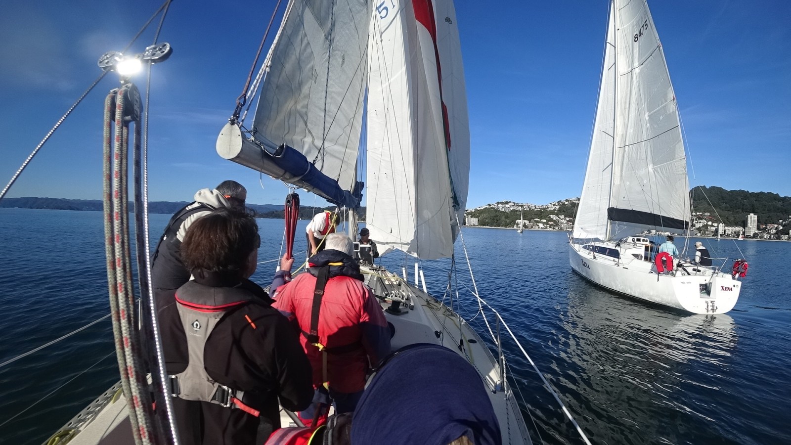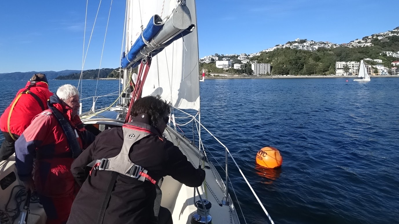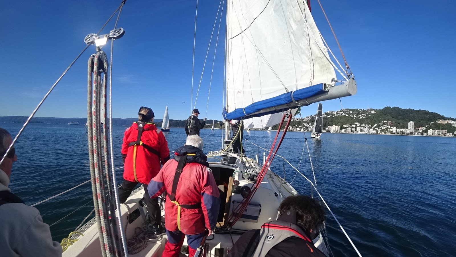 A beautiful Wellington winter’s day. As we were rigging up Halo, RPNYC Race Control called over ch. 62 that they were flying the AP flag with racing delayed waiting for wind. We decided to get out on the water anyway and have some fun. We cast off at 1130 hrs.