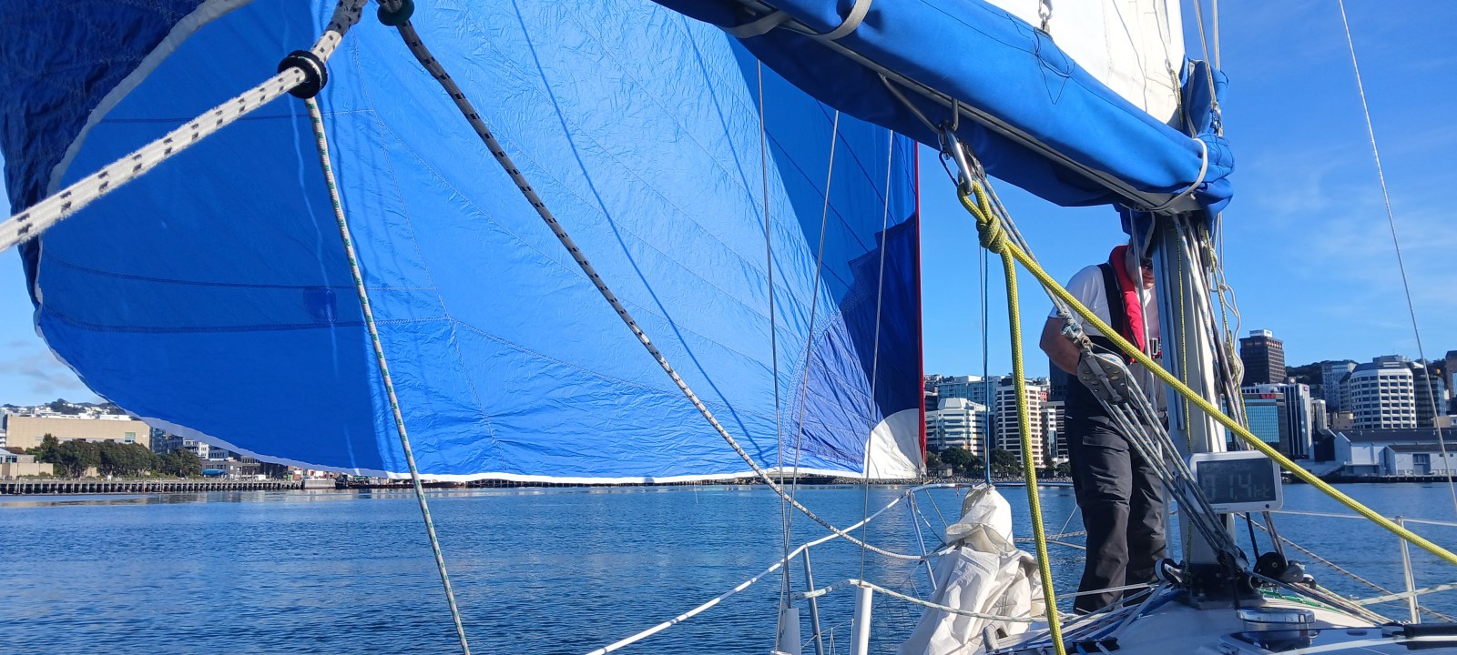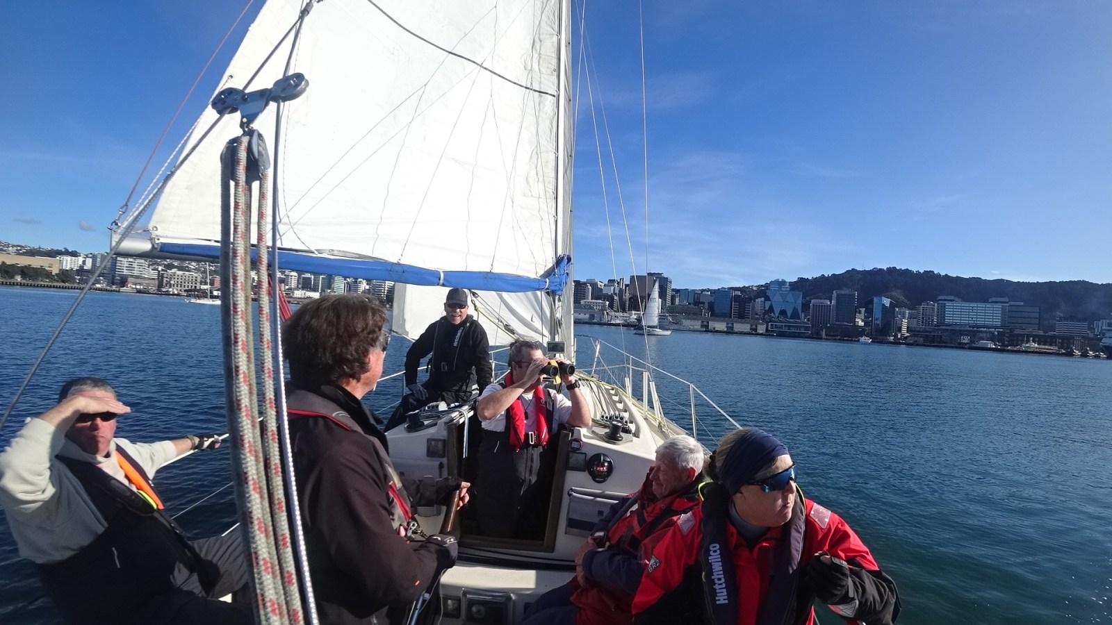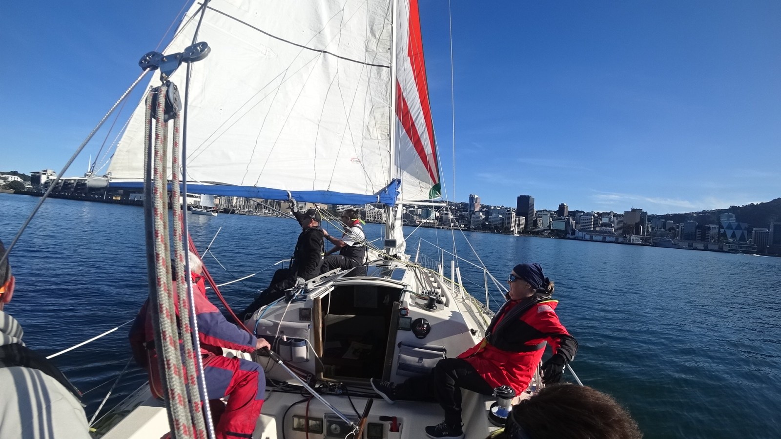 A beautiful Wellington winter’s day. As we were rigging up Halo, RPNYC Race Control called over ch. 62 that they were flying the AP flag with racing delayed waiting for wind. We decided to get out on the water anyway and have some fun. We cast off at 1130 hrs.