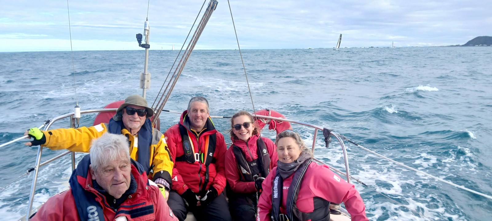 Race Control announced the course over VHF: Start – Mark 10 Falcon Shoal (s) – Mark 7 Barrett Reef Buoy (p) – Mark 6 Front Leading Light (p) – Finish, with countdown starting at 1155 hrs. We called in and confirmed our intention to race with 6 POB.