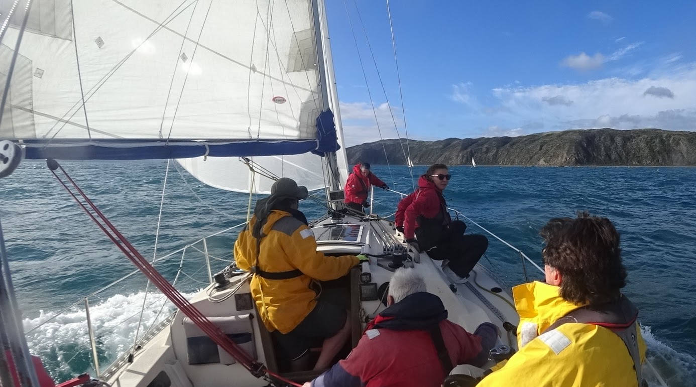 As we tacked our way towards Wellington Heads the southerly swell combined with 15 kts of wind against the outgoing tide made for some exciting big waves crashing over us.