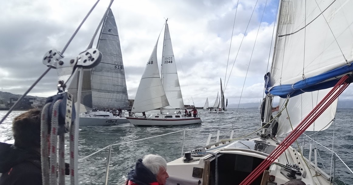 Thirteen boats were entered in the race which was due to start at 1200 hrs. For some reason we didn’t hear the call for the five minute countdown at 1155 and started our timer at the 4 min call which meant we were one minute late getting to the line. We weren’t the only ones…
