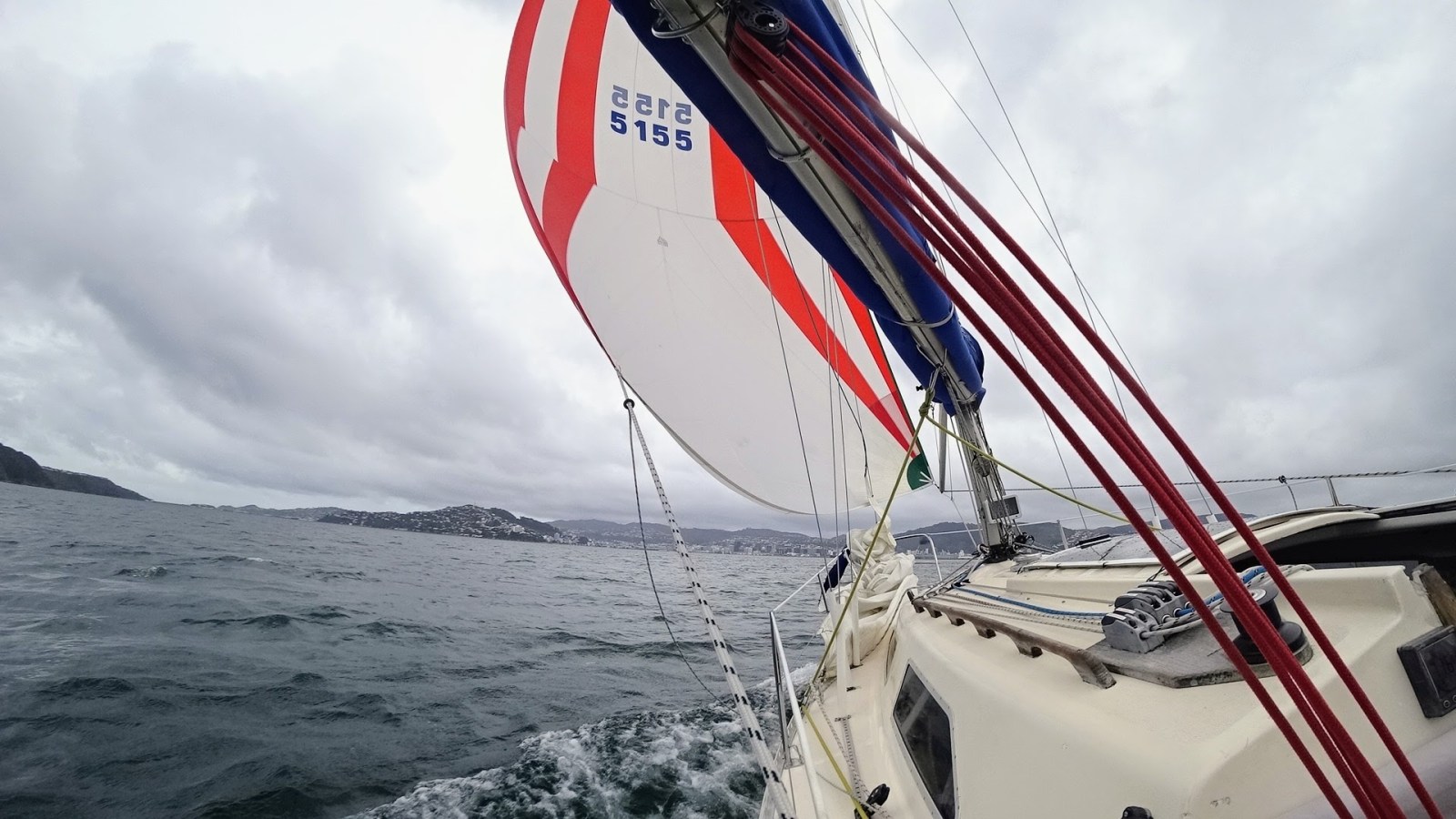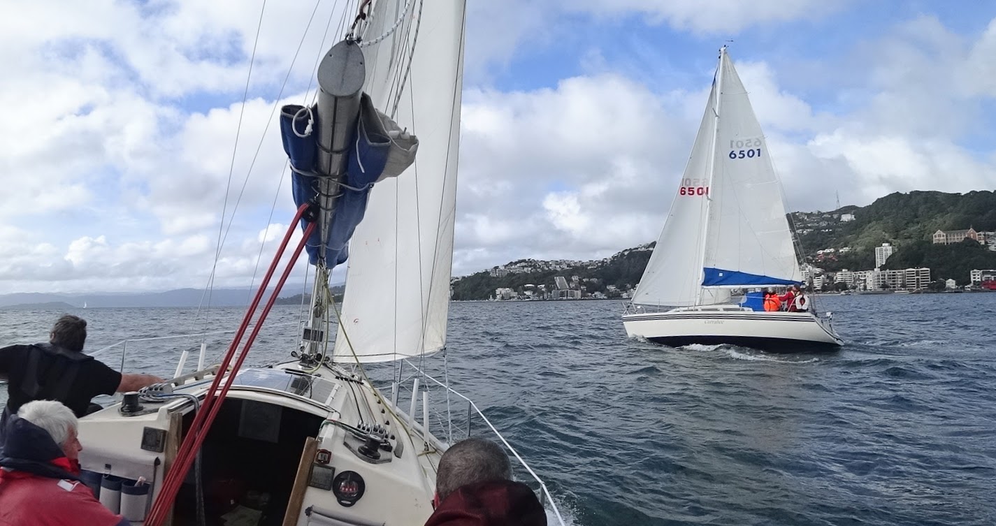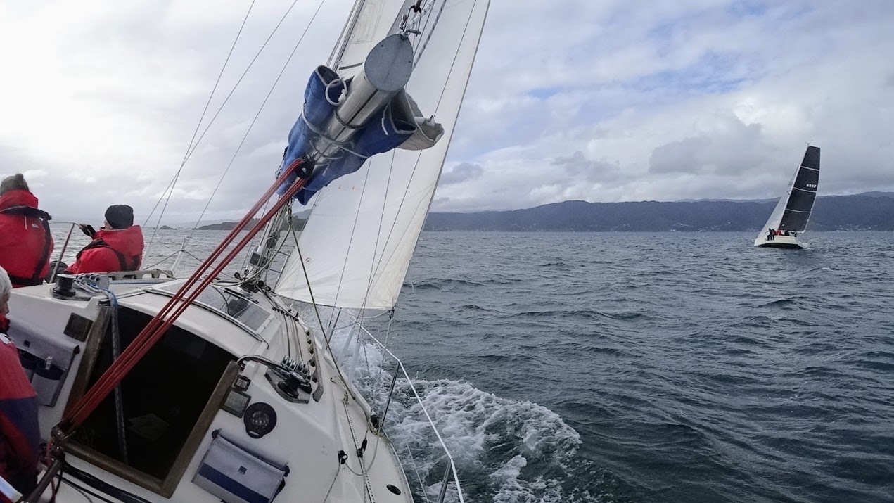 As we headed up the harbour towards Somes Island, Zigzag, who had started well back, stole our wind for a while as they overtook us to windward. They were pointing lower though, as we sailed close-hauled towards Somes.
