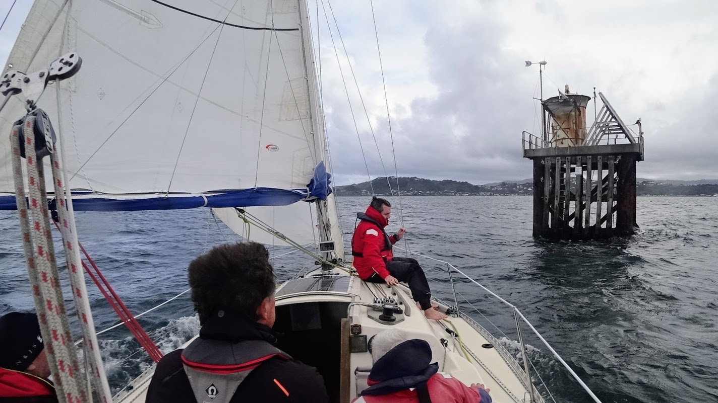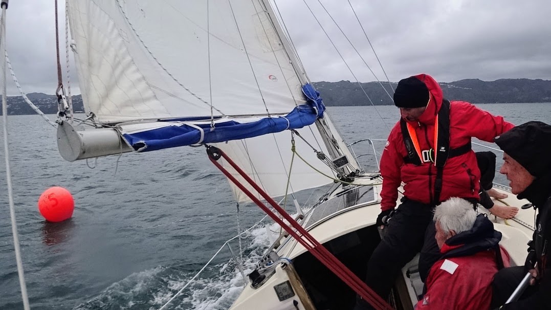 We did our first tack off Kau Point and then headed NE up the harbour. We couldn’t see Mark 5 but Murray made the call when to do our second tack which worked out perfectly! We rounded the mark at 1427 hrs. (We learned later that Haumuri ahead of us, had hit the mark and did a 360° penalty turn).