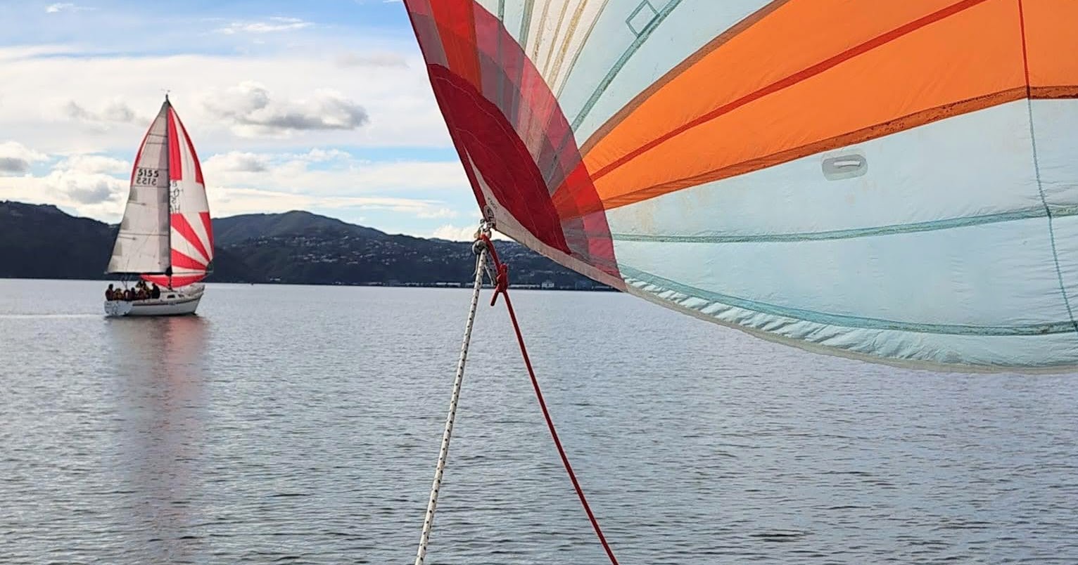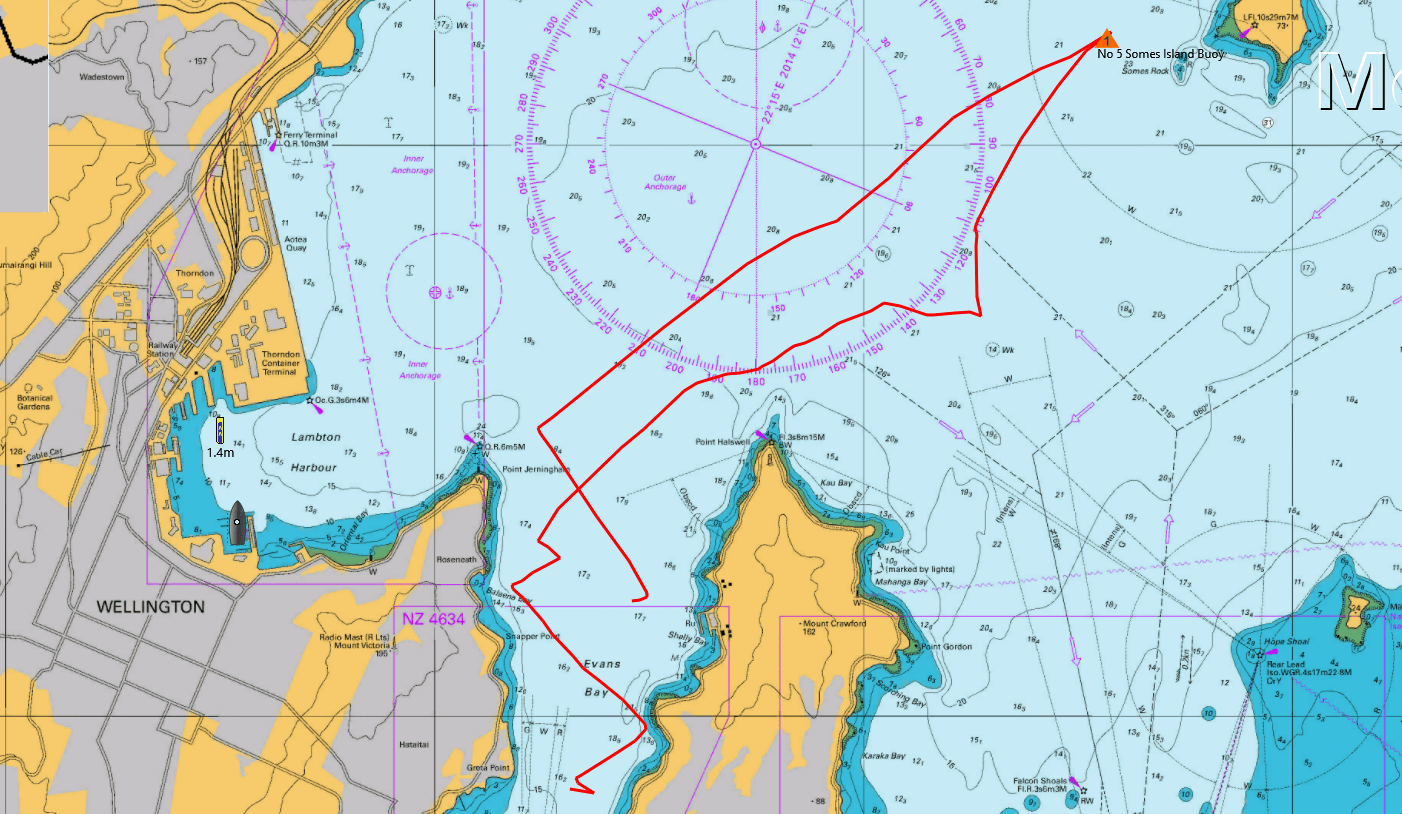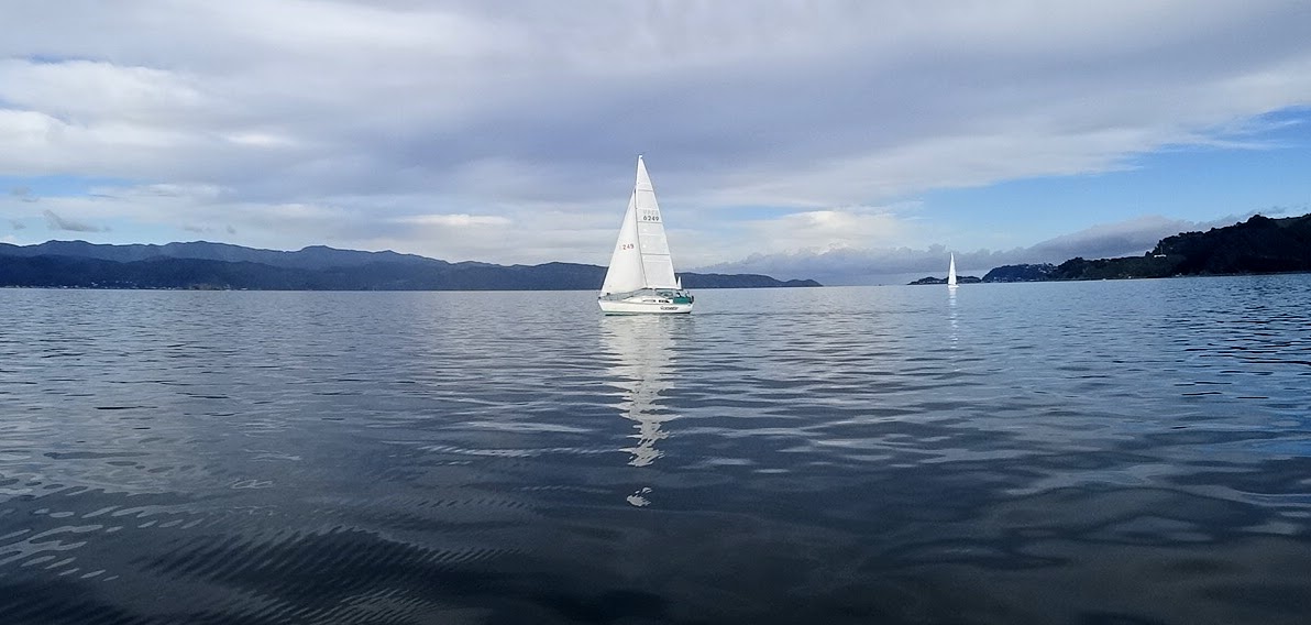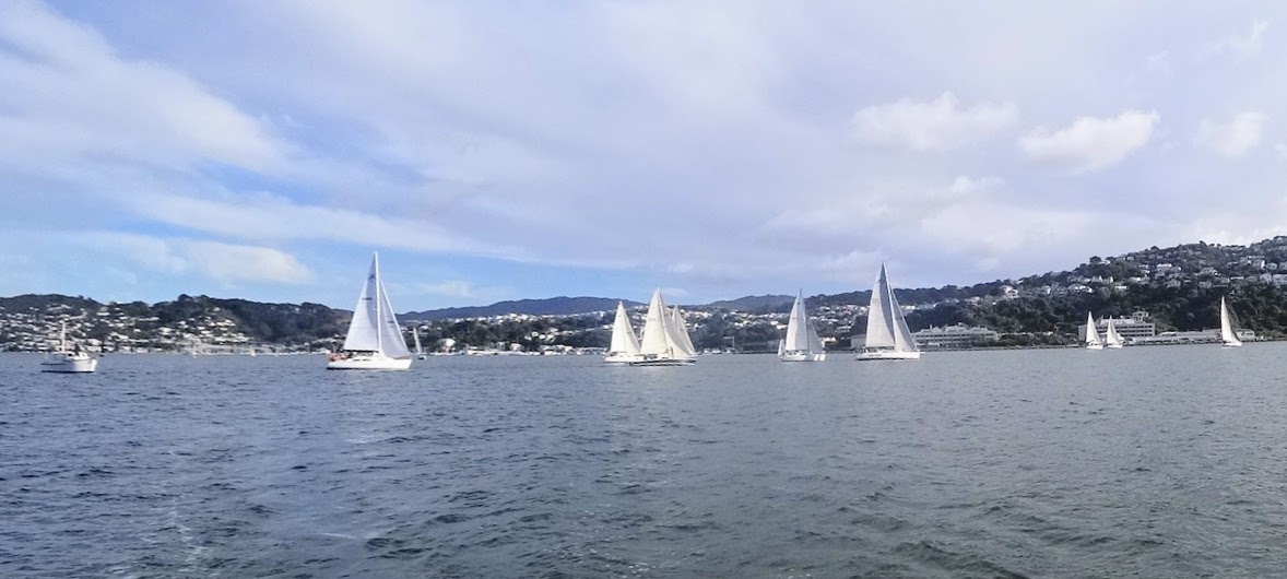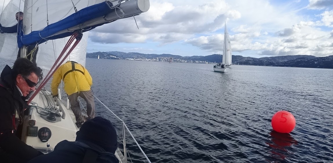 We tied Halo up at the wharf in front of the Evans Bay clubhouse where Murray and Dean joined us. The course was announced: Start – Mark 5 (s) – Mark 12 (s) – Finish, with on-water start and finish.
