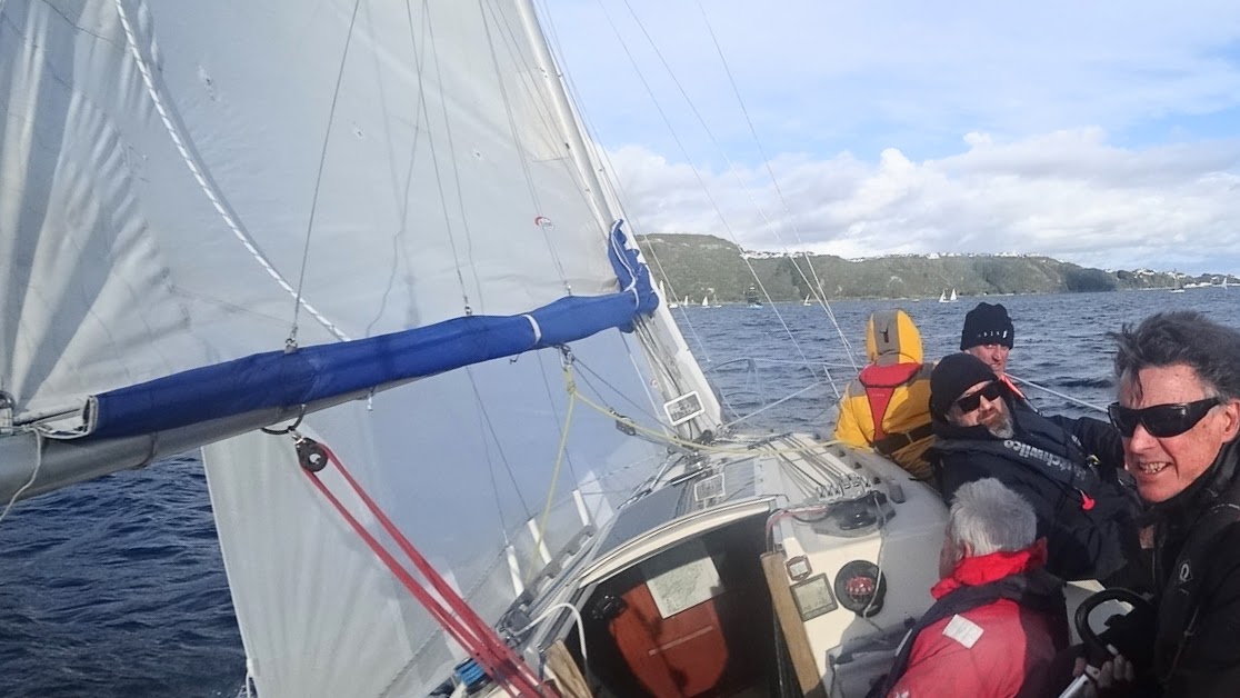 The southerly was increasing to 15 kts and we had a great beat down the harbour heading towards Pt Jerningham.