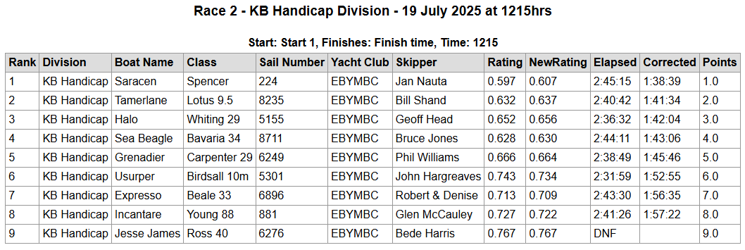 The results for the race were announced at the club that evening. As well as winning a spot prize voucher from Barton Marine, Halo came second on line, third on handicap and first on PHRF! Well done to Jan on Saracen for winning first on handicap.