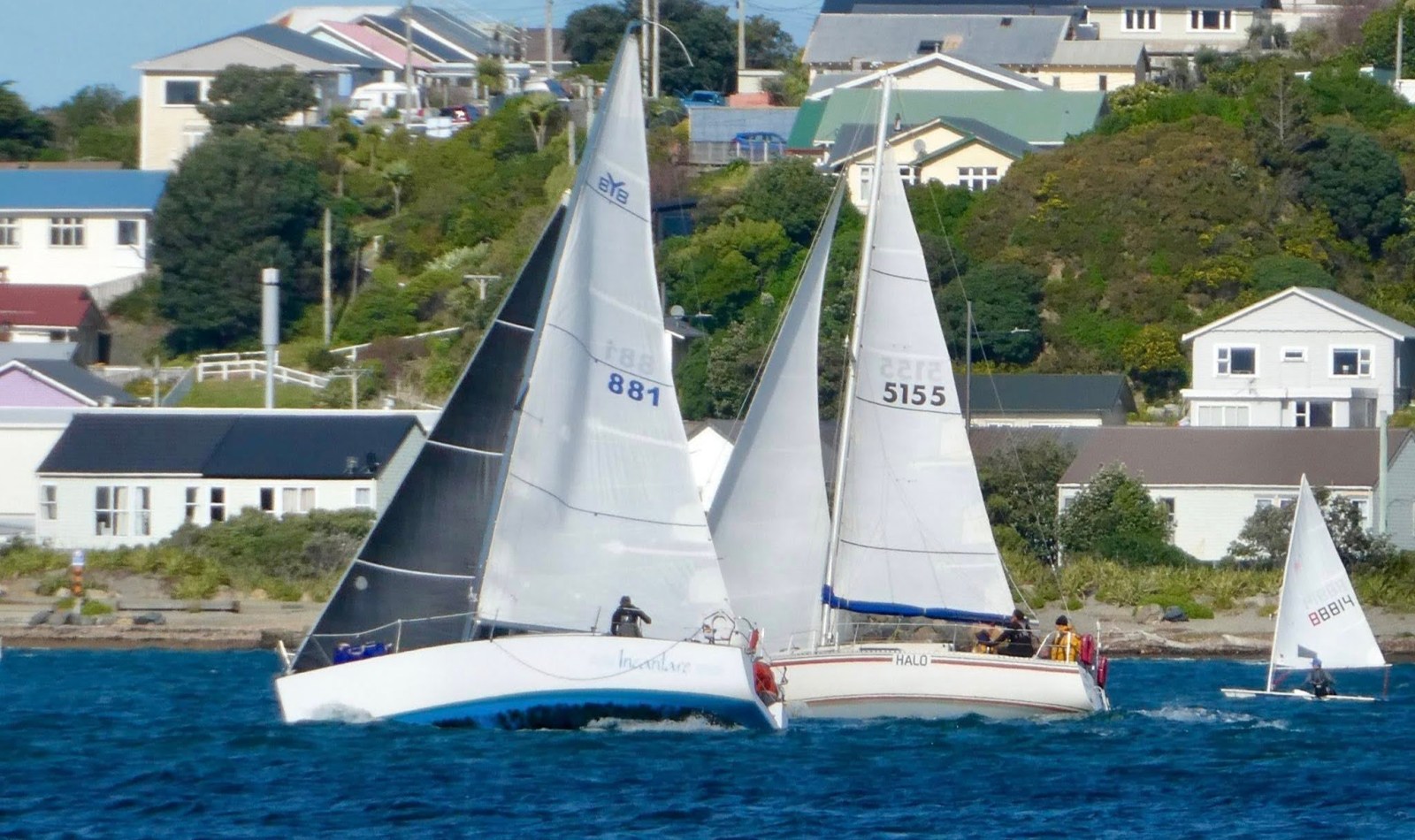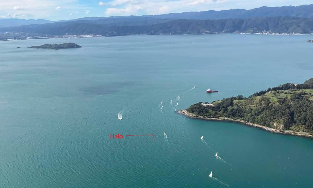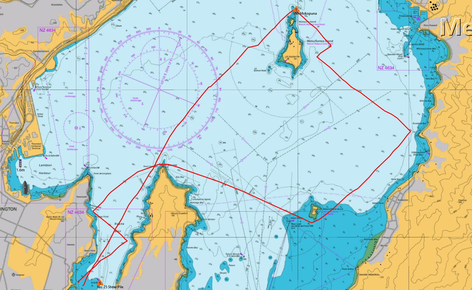 We tacked off the headland between Days Bay and Sunshine Bay and headed towards Somes Island. Incantare were still behind us but eventually crossed ahead of Halo as we tacked onto the layline for Mokopuna virtual mark.