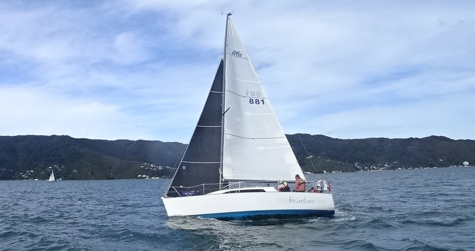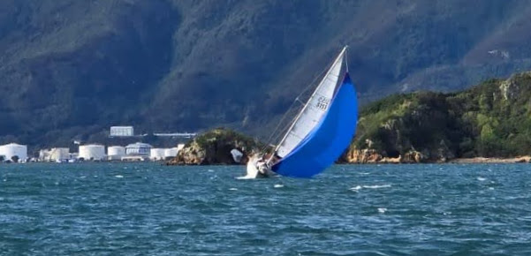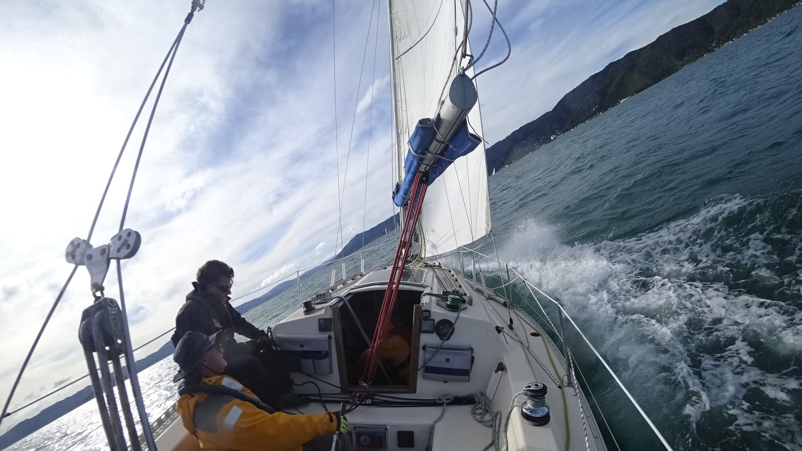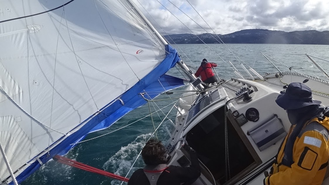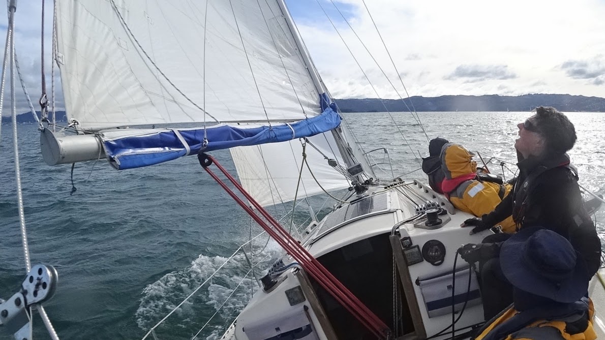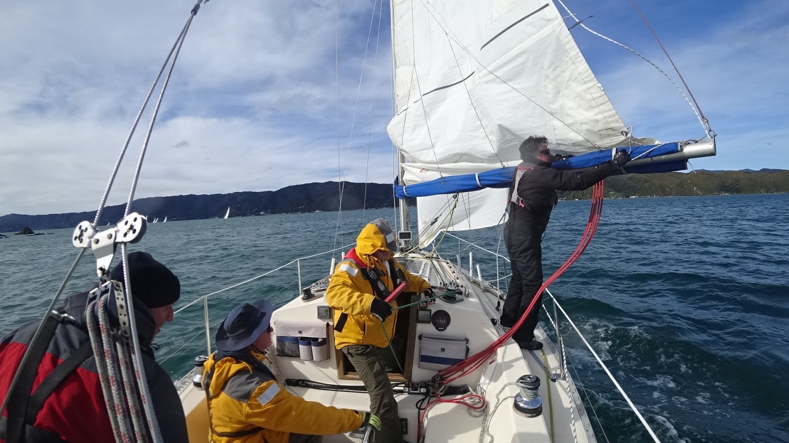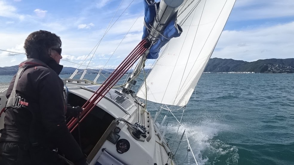 By the time we got to Evans Bay, however, we found we were over powered and regrettably we had to change the headsail down to the smaller no. 2. We also put a reef in the main.