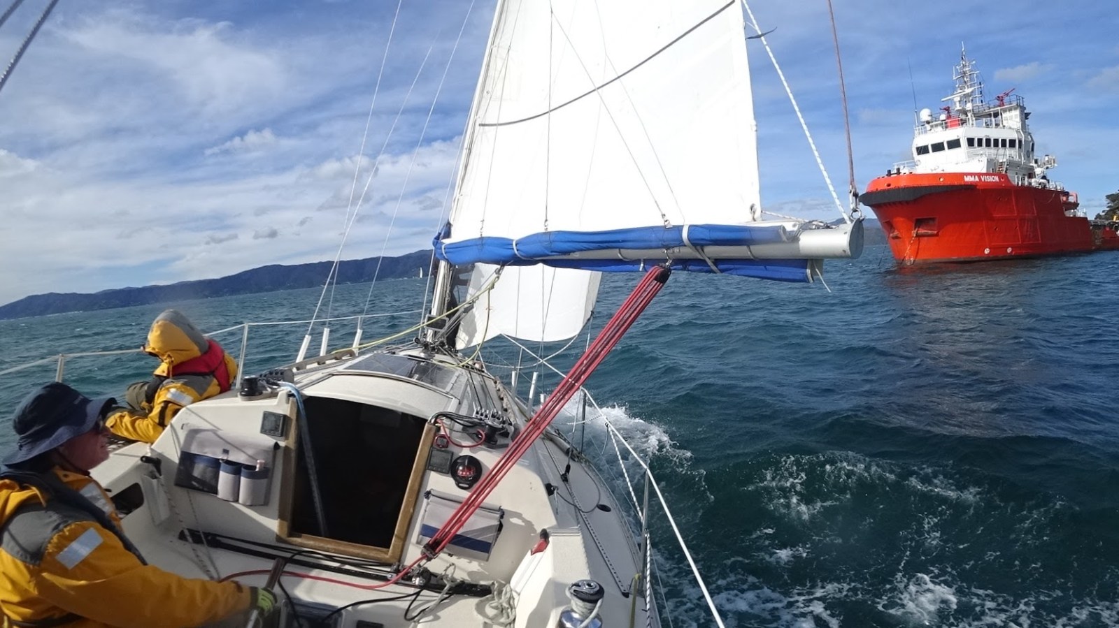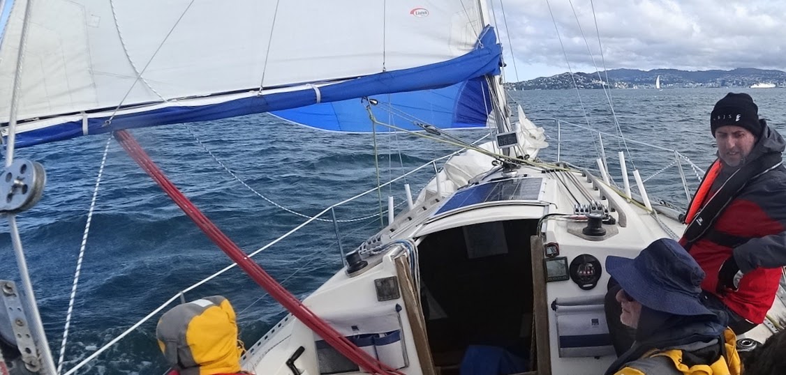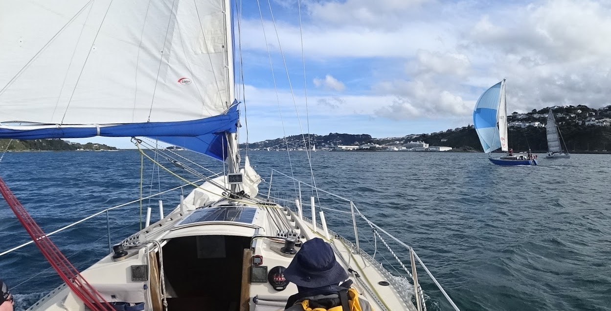 As we entered Evans Bay we now needed to sail almost dead downwind. Of course gennakers can’t do that and Peter had to steer up to keep the kite flying. We were wishing we had our symmetrical spinnaker flying. We did try using the spinnaker pole to hold the gennaker clew out – with some success but not ideal.