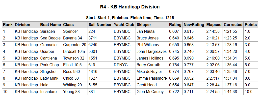 The race course was announced: Start – Ward Island (p) – Somes (p) – Finish, starting at 1215 hrs.