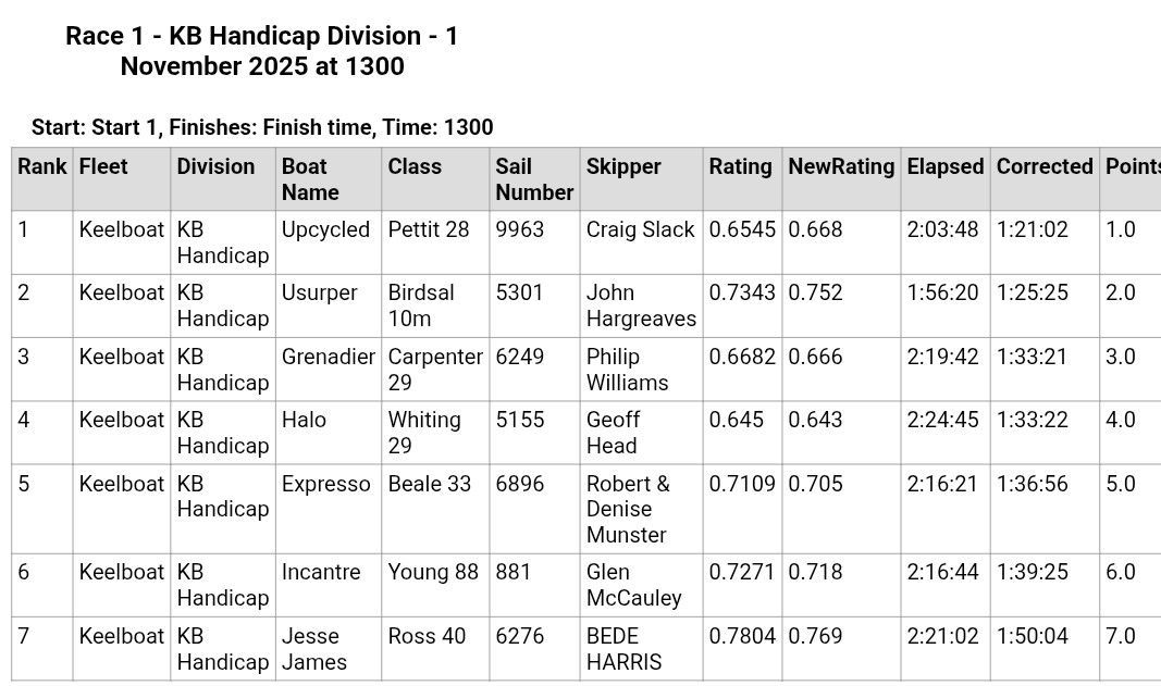 The club finally released the results on Monday after the sailing committee decided not to penalise boats that went around the new Falcon Shoal mark. Halo came 4th on handicap. π