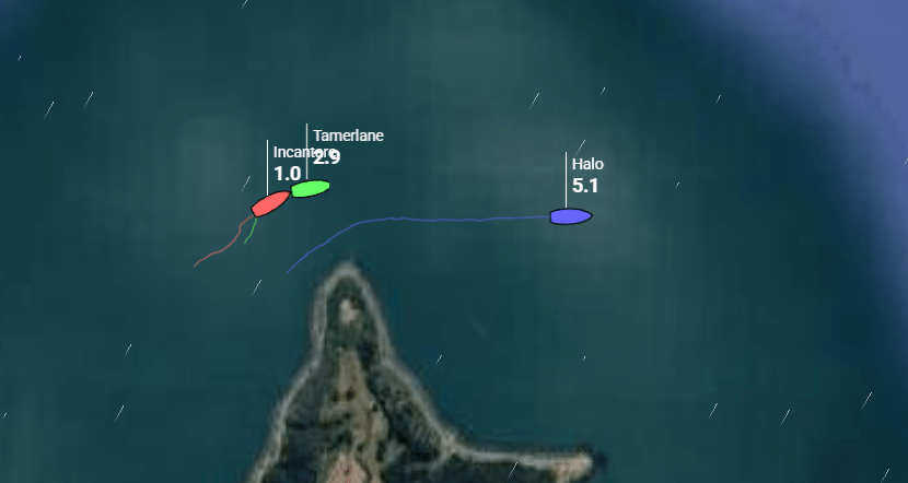 We were doing pretty well until it was Halo’s turn to get into a wind hole. We came to a stop and drifted around for a few minutes until we were pointing in the wrong direction altogether. Argh!