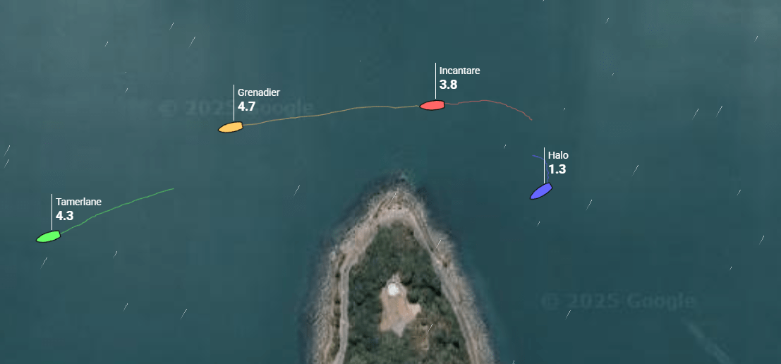 Peter did a great job on helm as we managed to keep ahead of Grenadier and Expresso in the light breeze and come up behind Incantare to steal their wind.