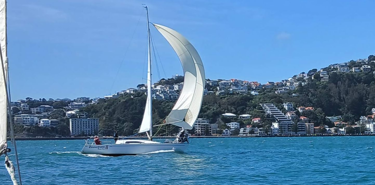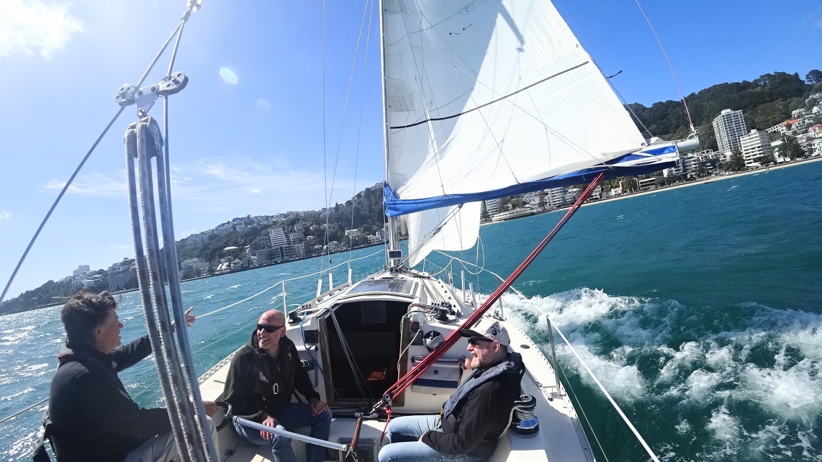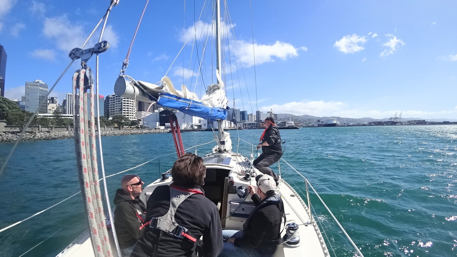 The Evans Bay race was cancelled for the day. Jamie had a couple of mates visiting from Switzerland. They’d never been sailing before, and only in Wellington for one day, so we took them out for a short blat.
