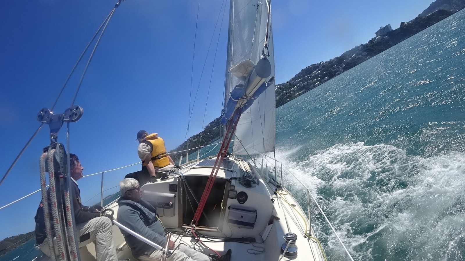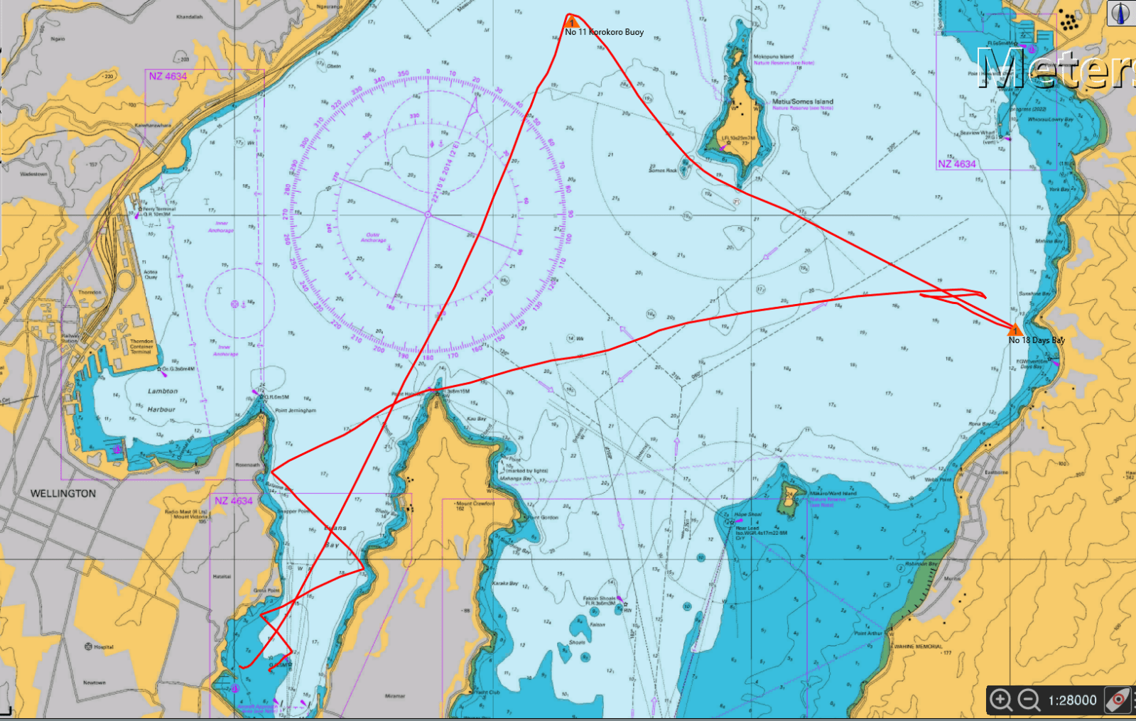 Race Control announced the course: Start – Mark 11 Korokoro, Mark 18 Days Bay – Finish. We signed on with 4 POB and cast off with the no. 2 jib, full main, and medium spinnaker at the ready.