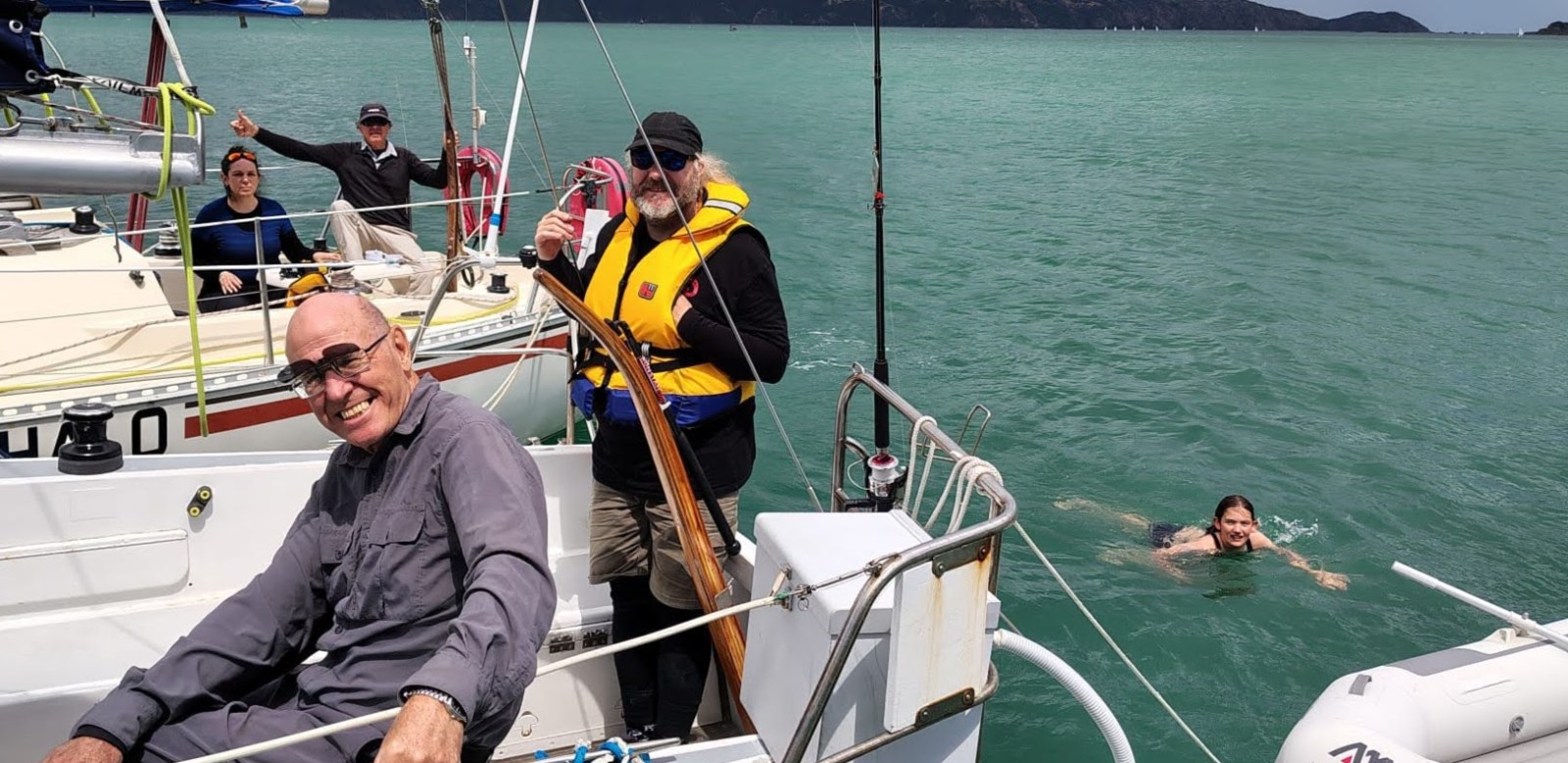Event organiser Phil soon came up on the VHF with a suggestion to rethink the plan and head around to the Scorching Bay mooring for a bit more shelter. Roger that!