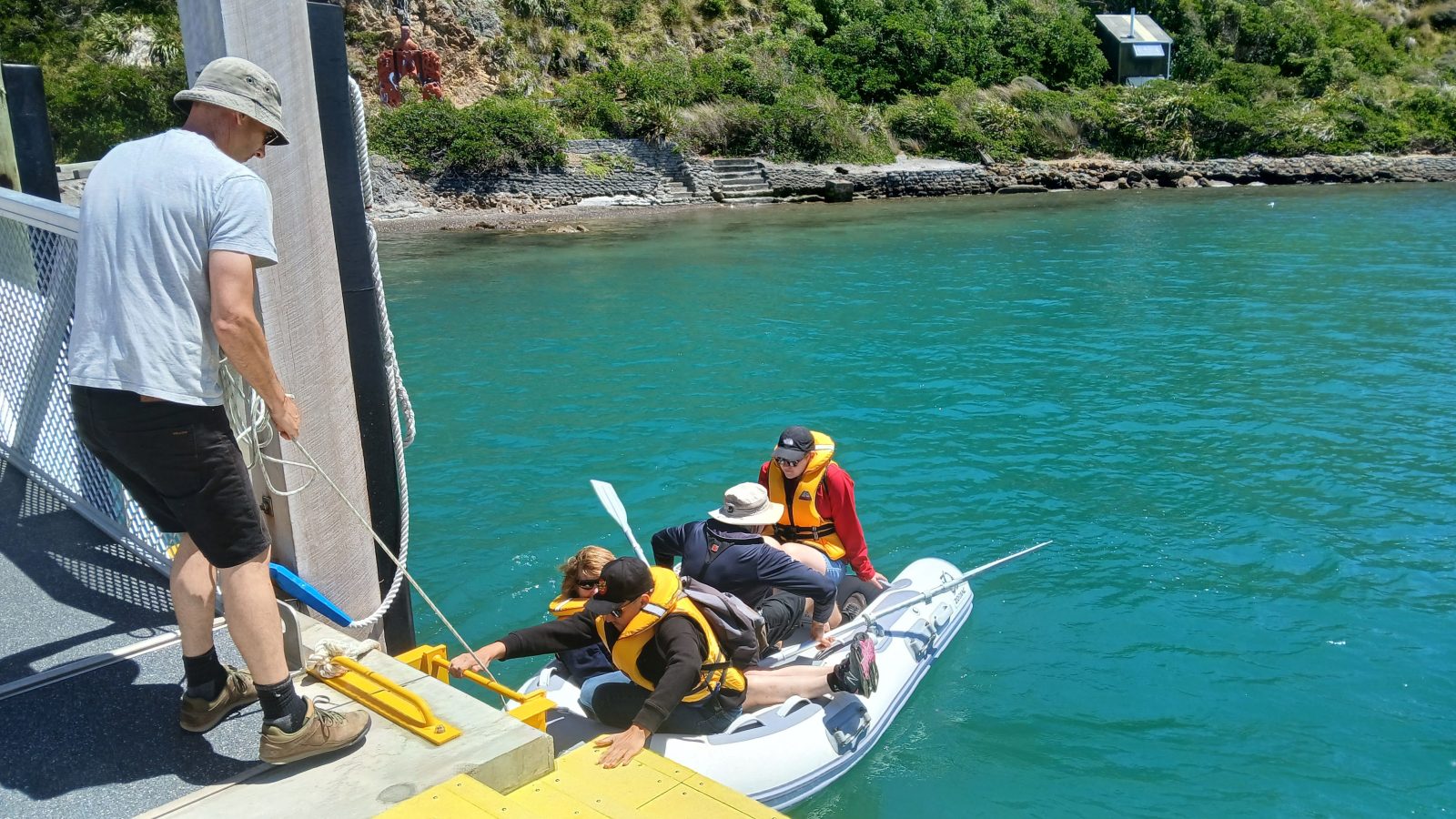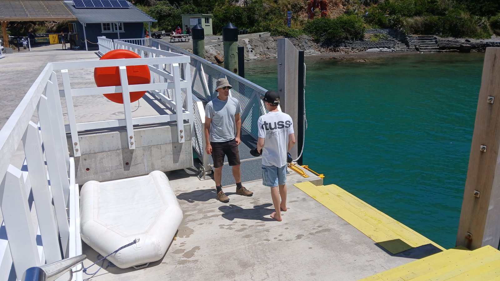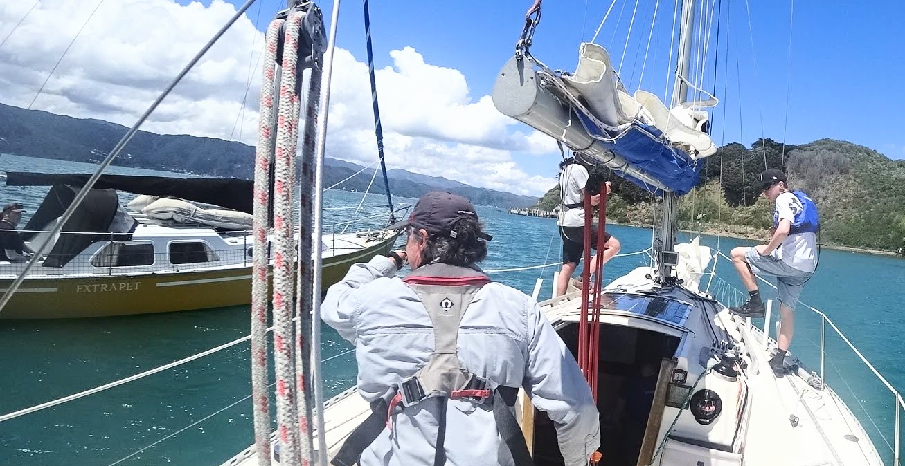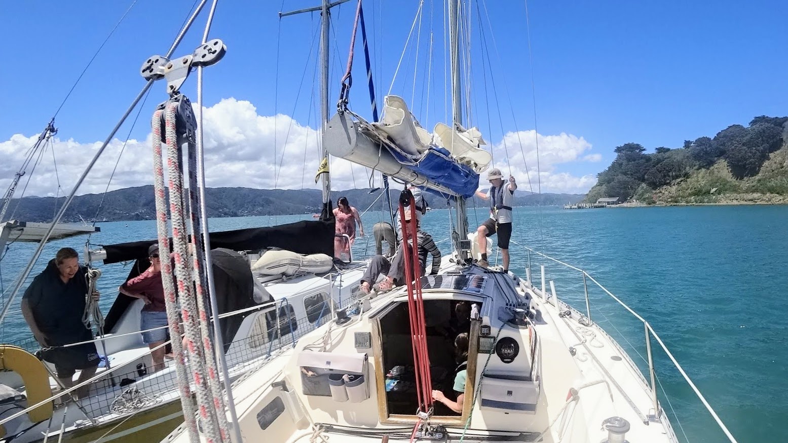 We dropped the anchor in around 6 metres of water and were just checking our holding when Ika Rere, the electric East–West ferry, appeared rather close for comfort! The skipper politely let us know that anchoring within 50 metres of the yellow buoys was a no-go area. Apparently that’s because Somes Island gets its fresh water from a bore into the Waiwhetu Aquifer beneath the harbour — something we all learned that day!