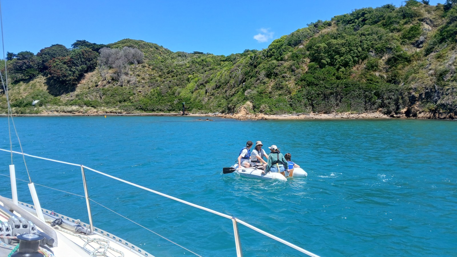 We were expecting to meet up with Rob and Denise on Expresso, but they hadn’t arrived yet. Another boat, Extrapet from Lowry Bay Club, was already on the club mooring. They kindly offered for us to raft up, but advised they’d be heading off fairly soon. With that in mind, we decided to anchor a little closer inshore while we waited for Expresso.