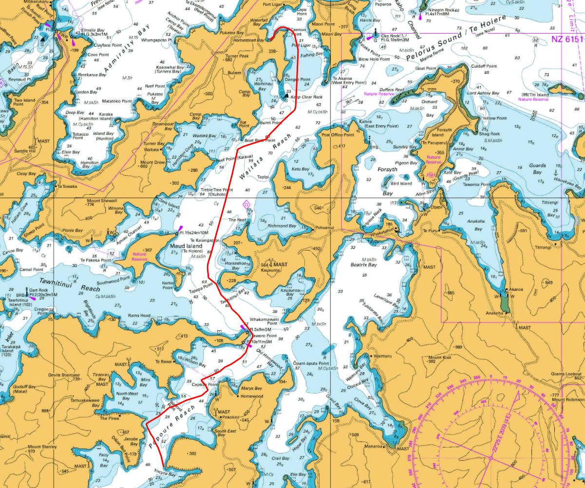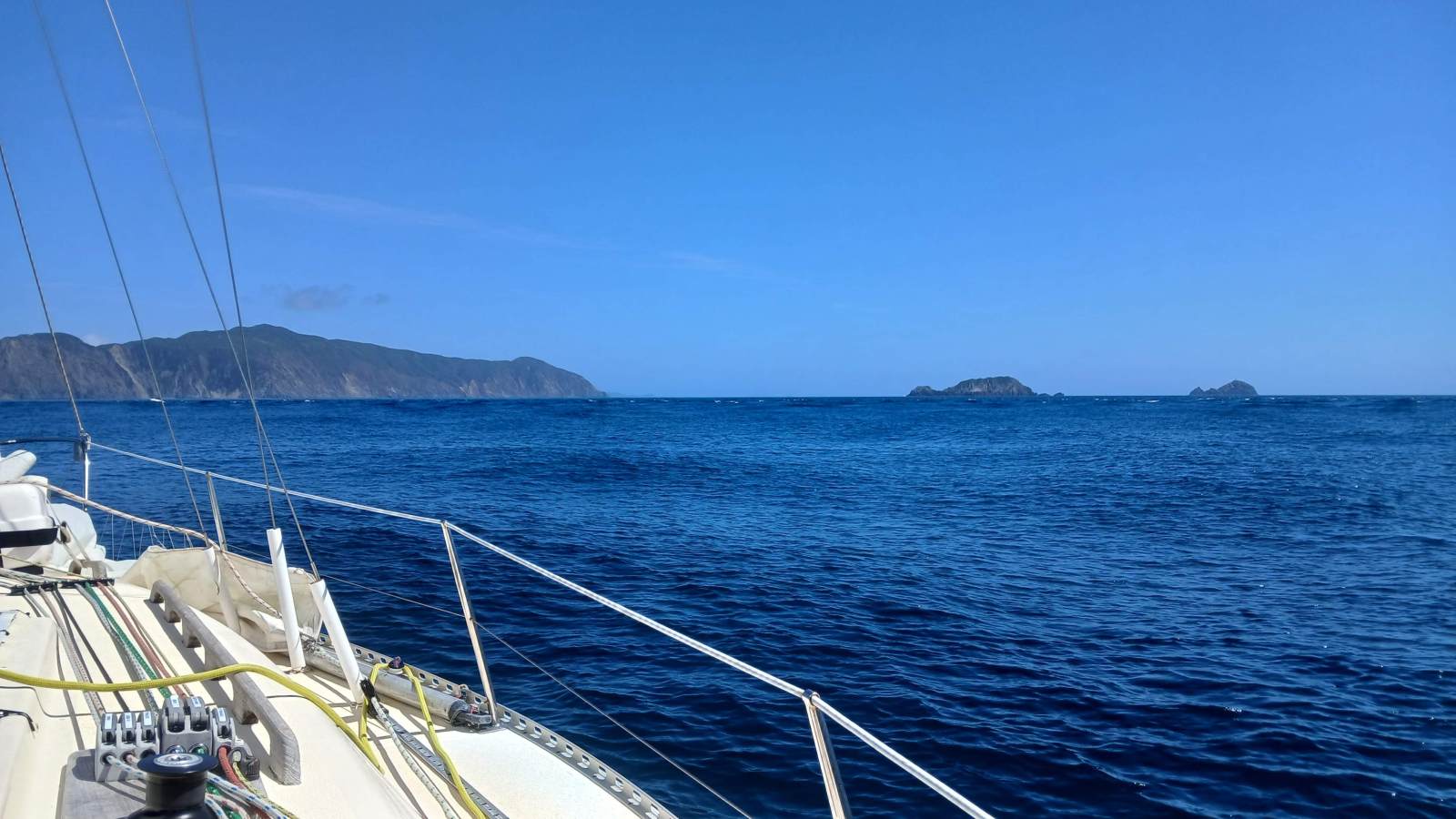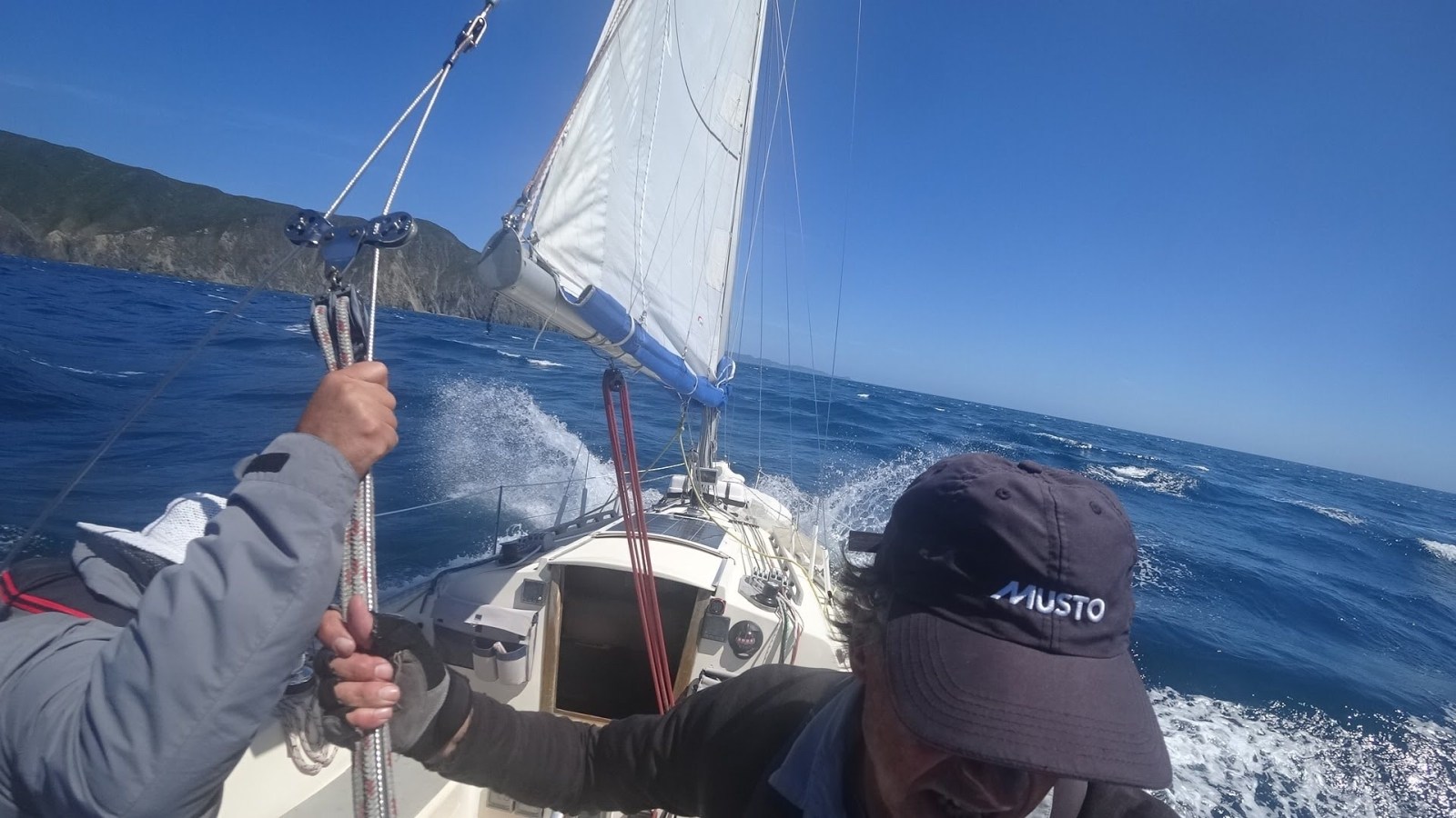 Once clear of the rip the wind eased. With a slight breeze on the nose, we dropped the jib and motor-sailed on a direct north-west bearing toward Cape Koamaru.