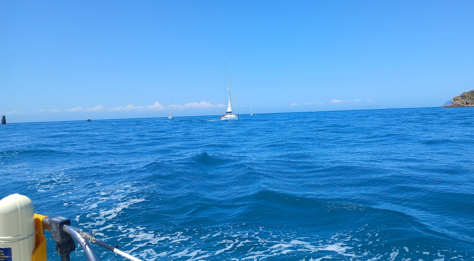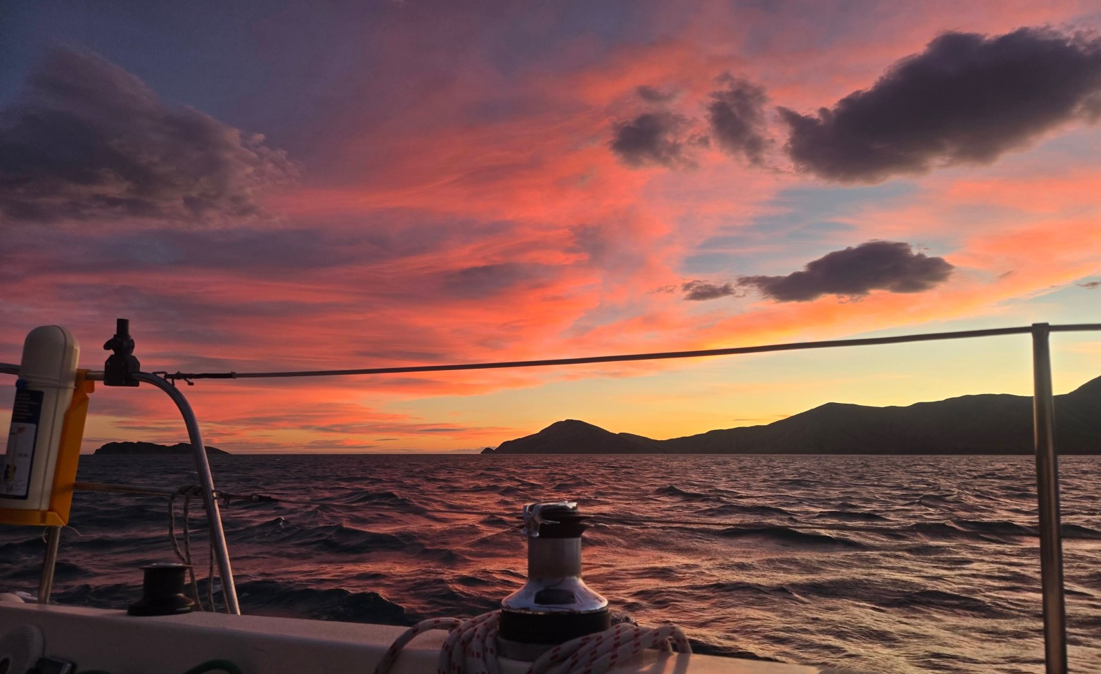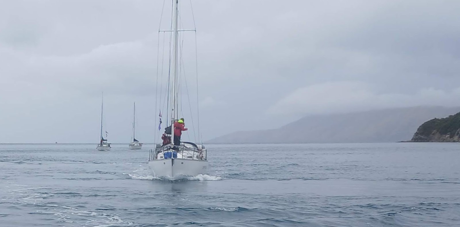 Once clear of the rip the wind eased. With a slight breeze on the nose, we dropped the jib and motor-sailed on a direct north-west bearing toward Cape Koamaru.