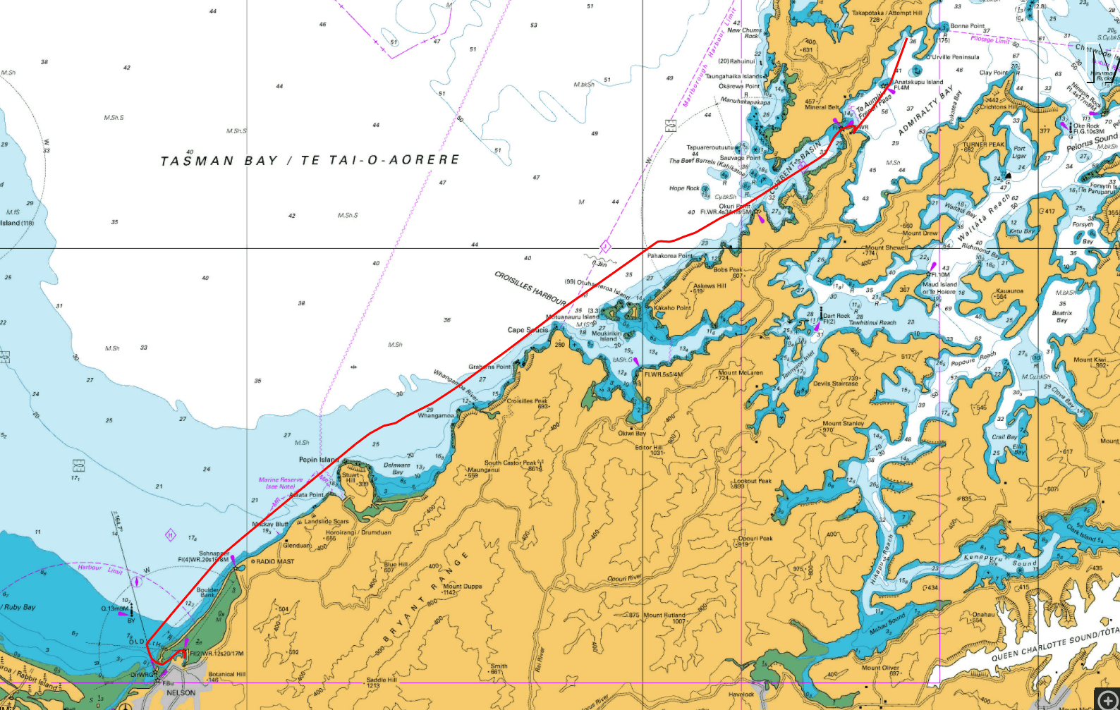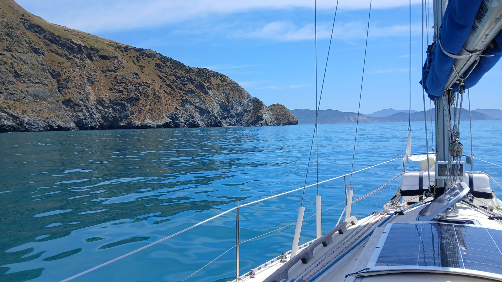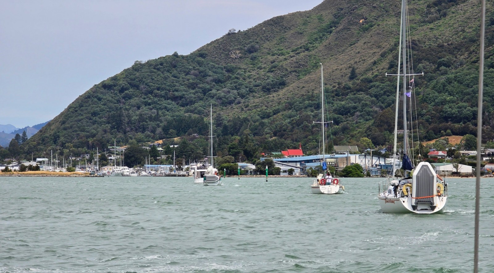 From there it was a 6.5-hour push across Tasman Bay to Nelson. Variable winds kept us busy, alternating between sailing and motor-sailing past Croisilles Harbour.