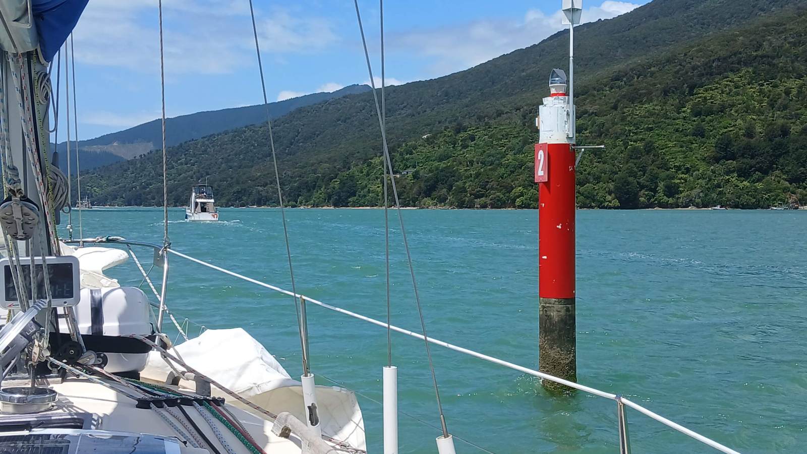 As we neared Pepin Island, the clouds cleared, revealing a brilliant sunny afternoon — a perfect backdrop for our triumphant arrival into Nelson Marina at 1837 hrs.