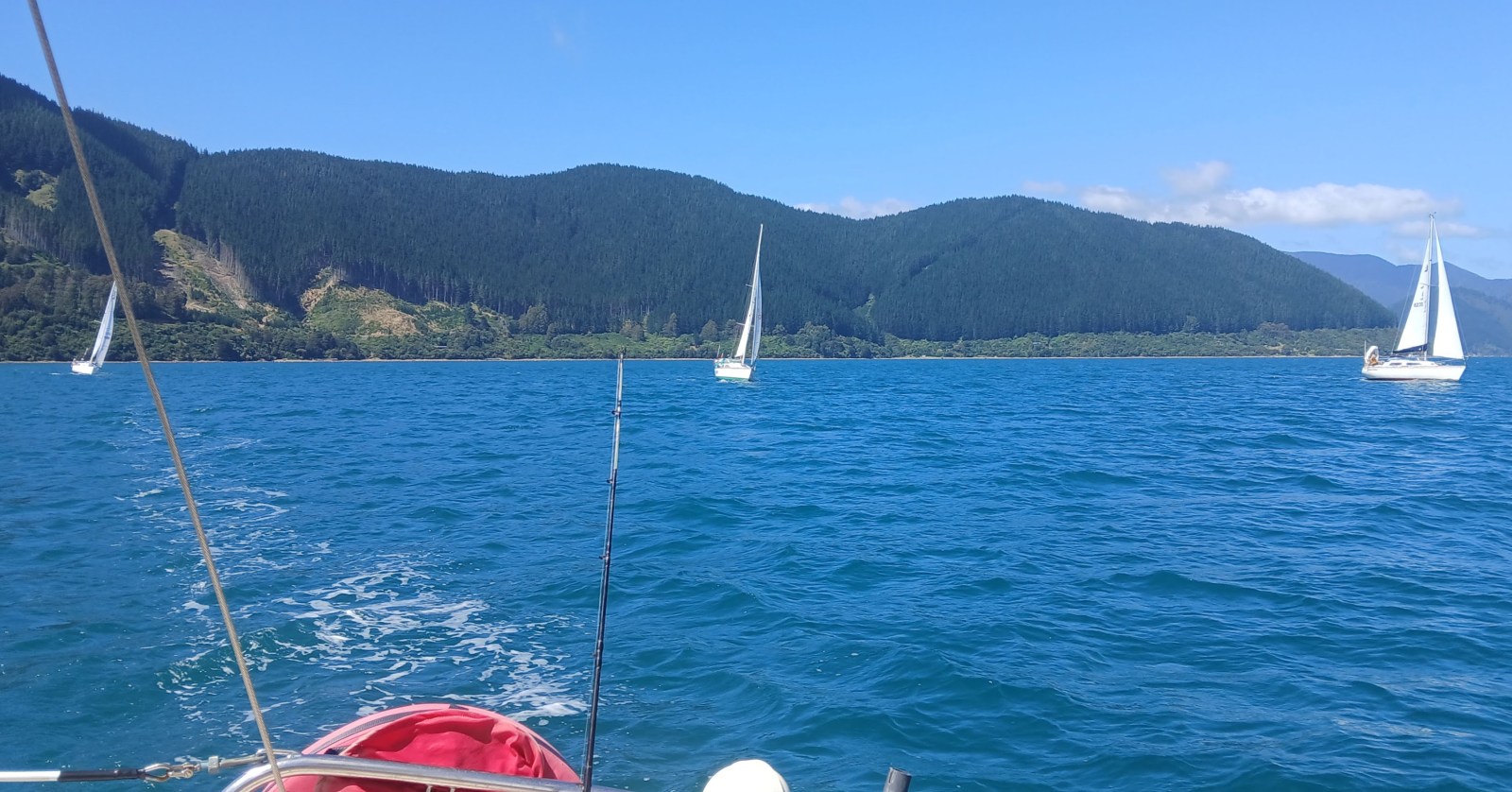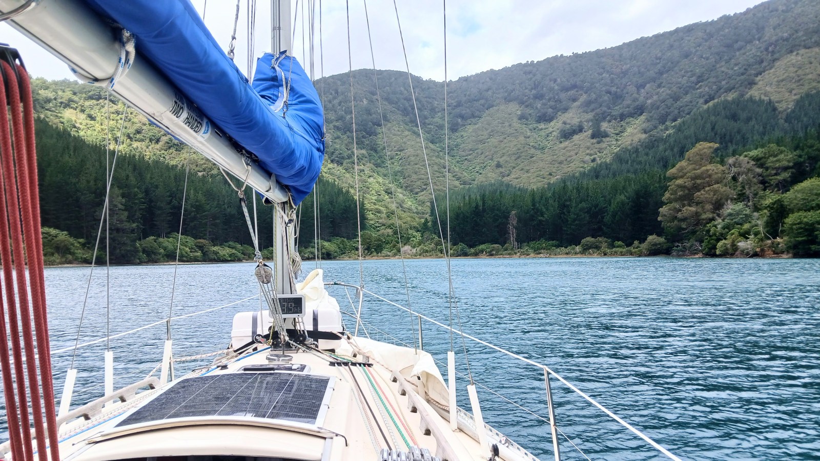 Still with little wind, we continued motor-sailing across the top of Queen Charlotte Sound.
