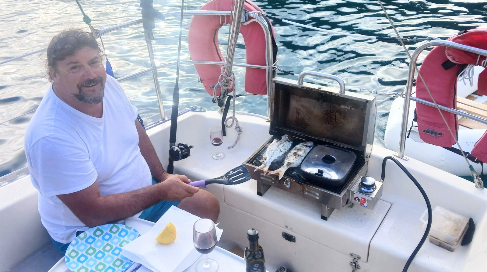 A great swimming spot, followed by Turkish kebabs aboard Halo. Delicious.