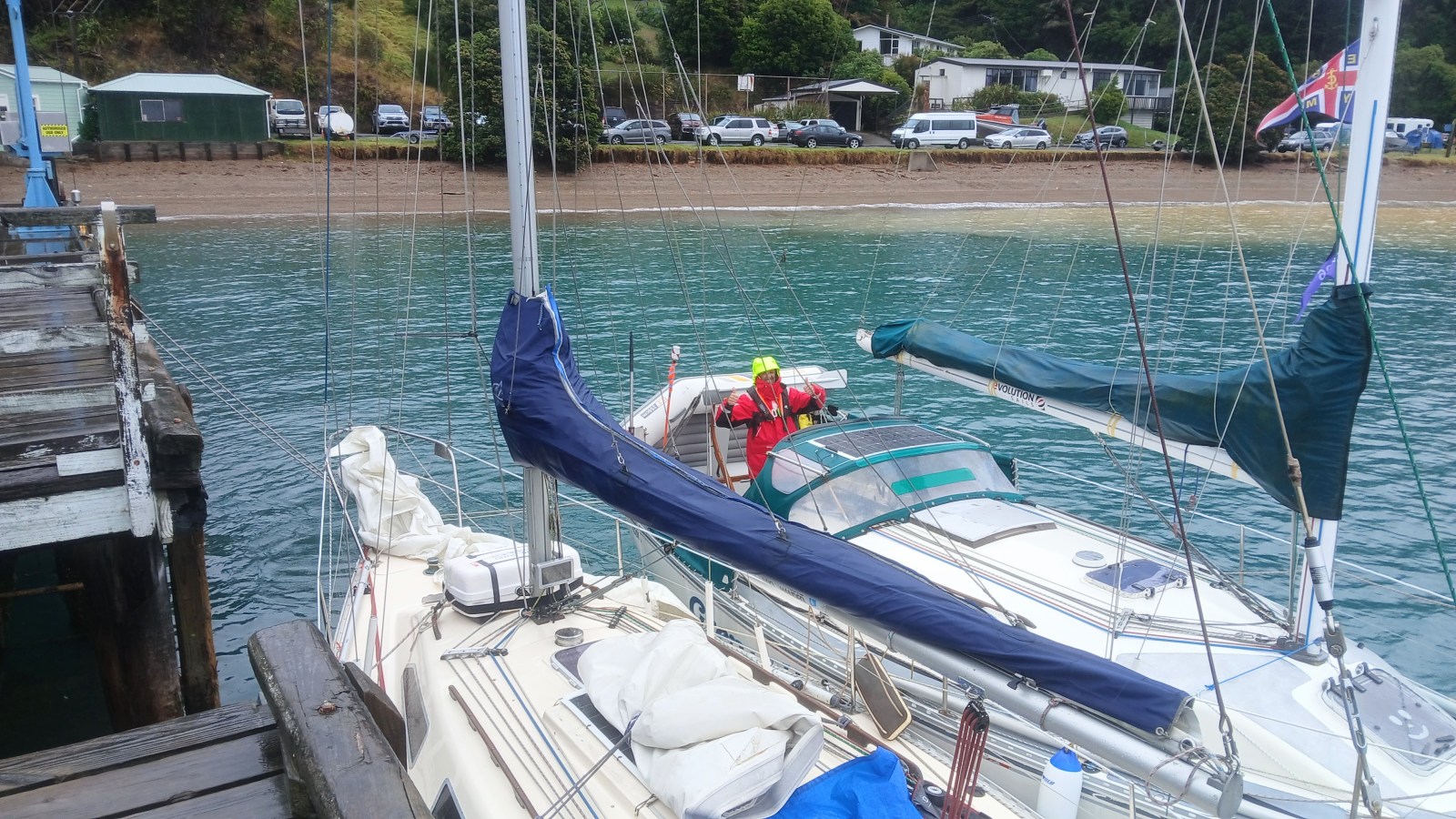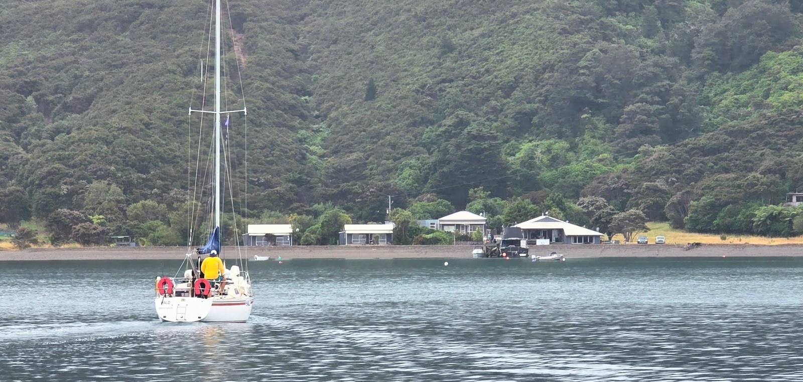 After breakfast and a good rest, I discussed options with the other skippers. We decided to head for Te Rawa Lodge, and a quick phone call confirmed they had enough moorings and no wind in the bay. Perfect.