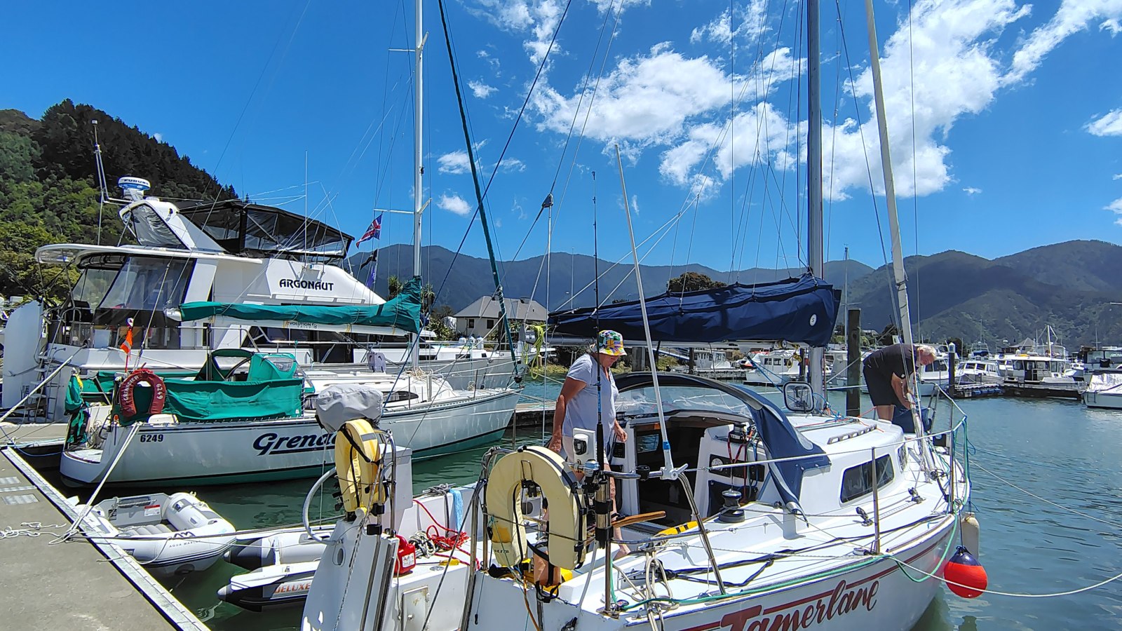 With a northerly storm forecast for the following day, we decided — together with Warren and Lyn on Lisar — to head south to shelter in Havelock Marina. Warren kindly called ahead and secured berths for all of us.