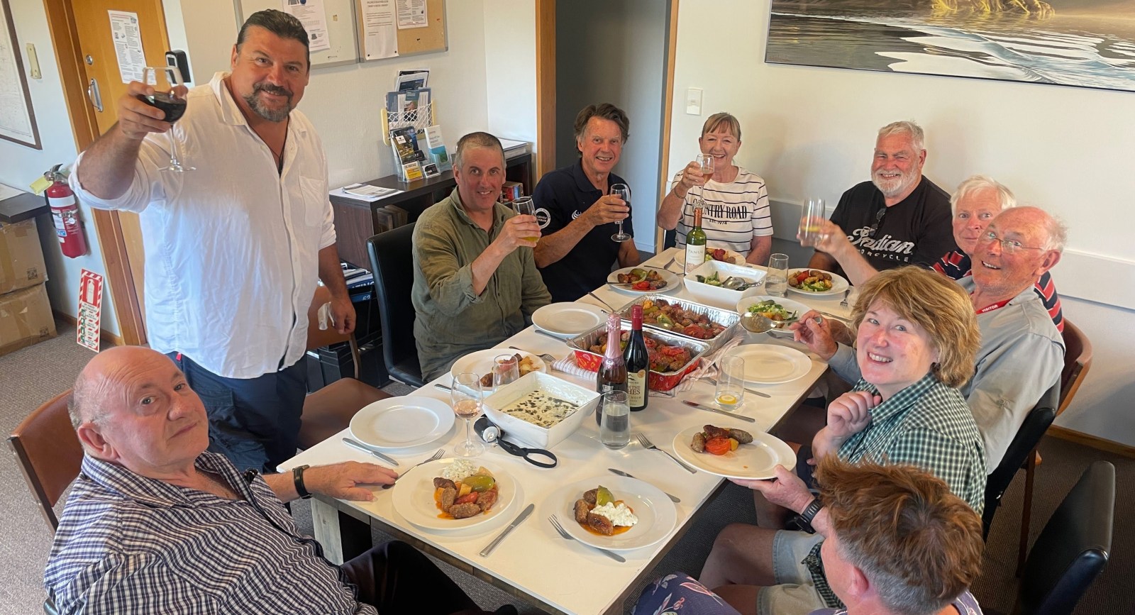 One boat occupied the club mooring, but after a friendly chat with Warren, the skipper kindly shifted to a nearby TBCC mooring so all five of our boats could use the Combined Club Mooring. Lyn thoughtfully presented him with a bottle of wine in thanks.