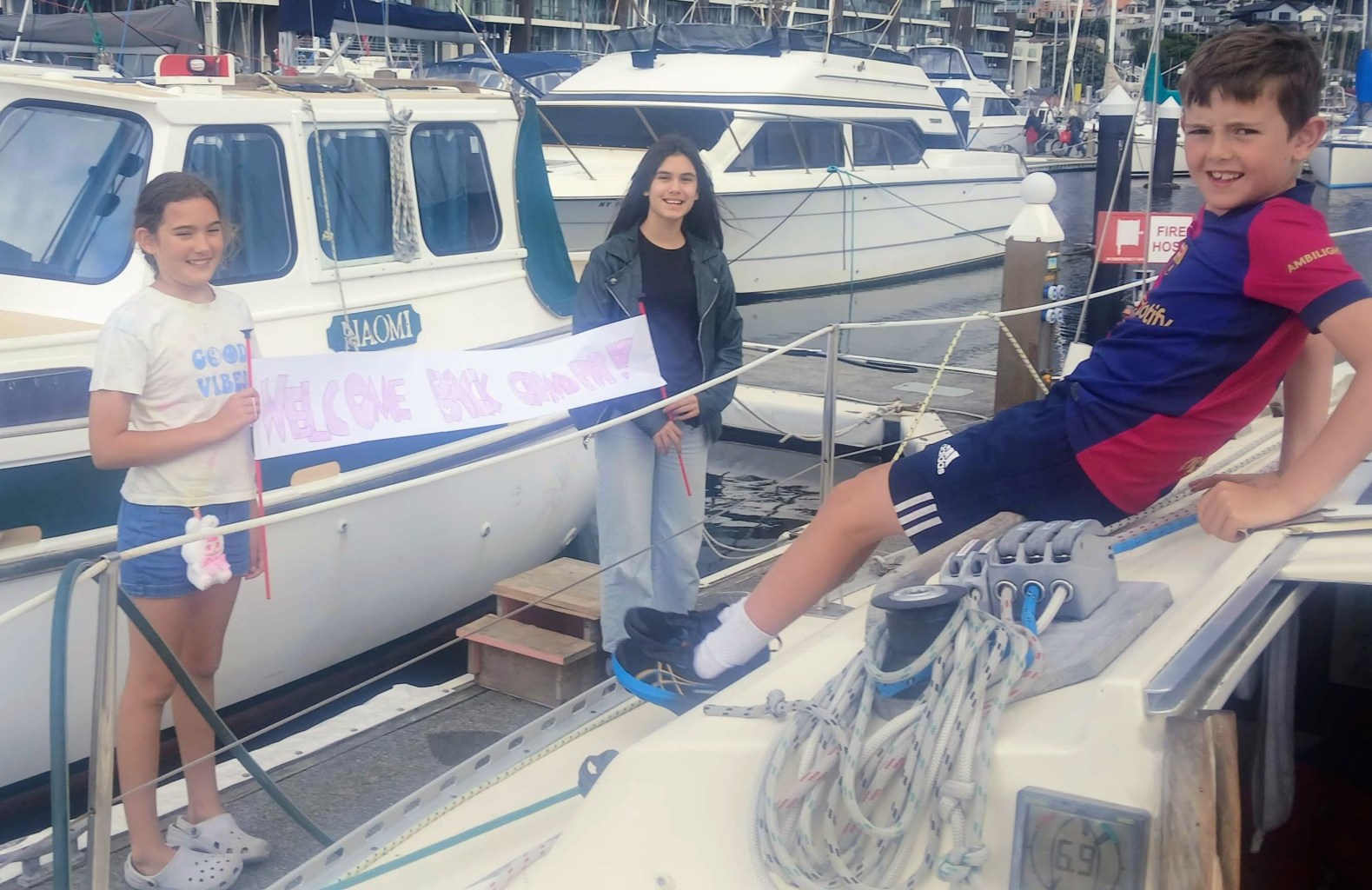 We finally docked at Chaffers Marina at 1815 hrs. Waiting on the dock were the family—Graciela, Jenny, Isabelle and Max—banner in hand reading “Welcome Home Grandpa.” A perfect welcome after a great adventure, and nice indeed to be home.