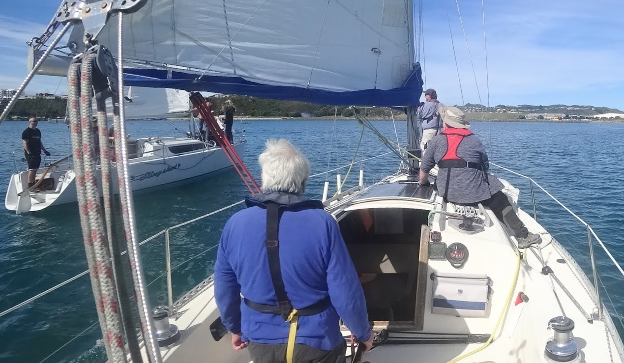 Dean joined me at Chaffers Marina and we cast off at 1100 hrs under clear blue skies. With barely a breath of breeze, we hoisted the No. 1 genoa and full main and drifted our way around to Evans Bay, eventually tying up alongside Tamerlane where Murray was waiting.