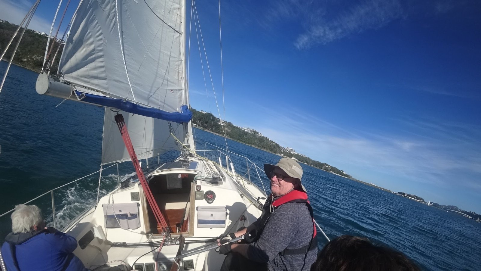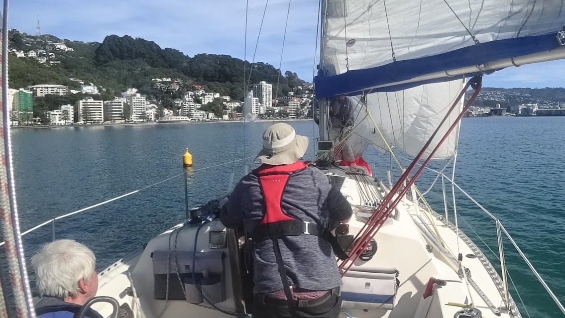 We continued on regardless, rounding Point Jerningham and enjoying a pleasant beat back up Evans Bay as the breeze finally filled in to around 10 knots giving Dean valuable helm time tacking back up Evans Bay.