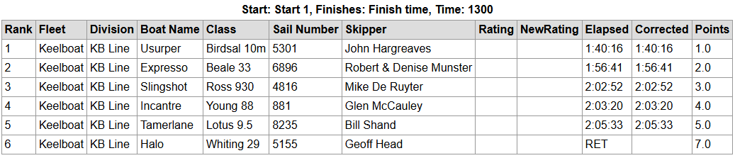 Dean and I then motored back to Chaffers, tying up at 1518 hrs. Despite the result—recorded as a retirement—it was a fantastic day to be back on the water.