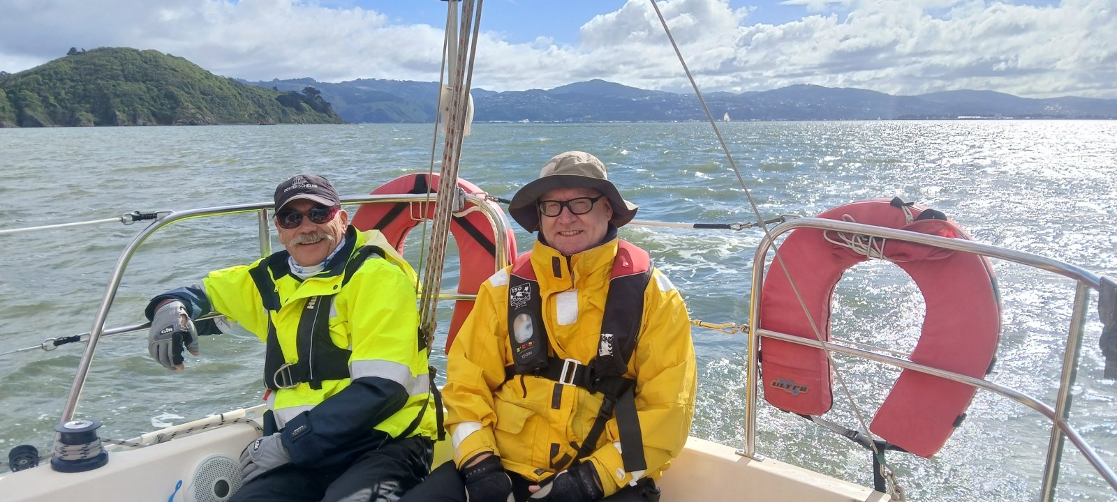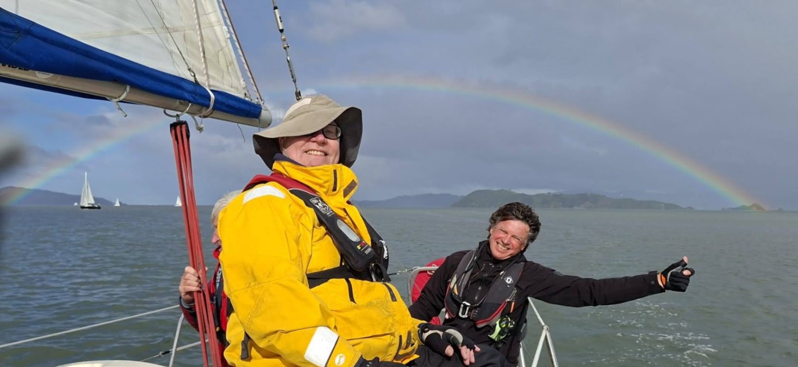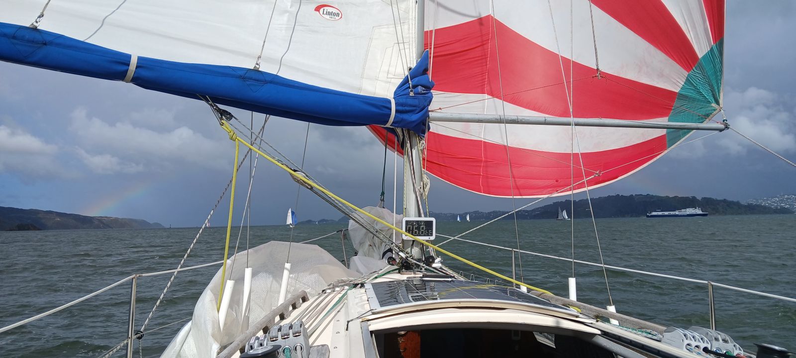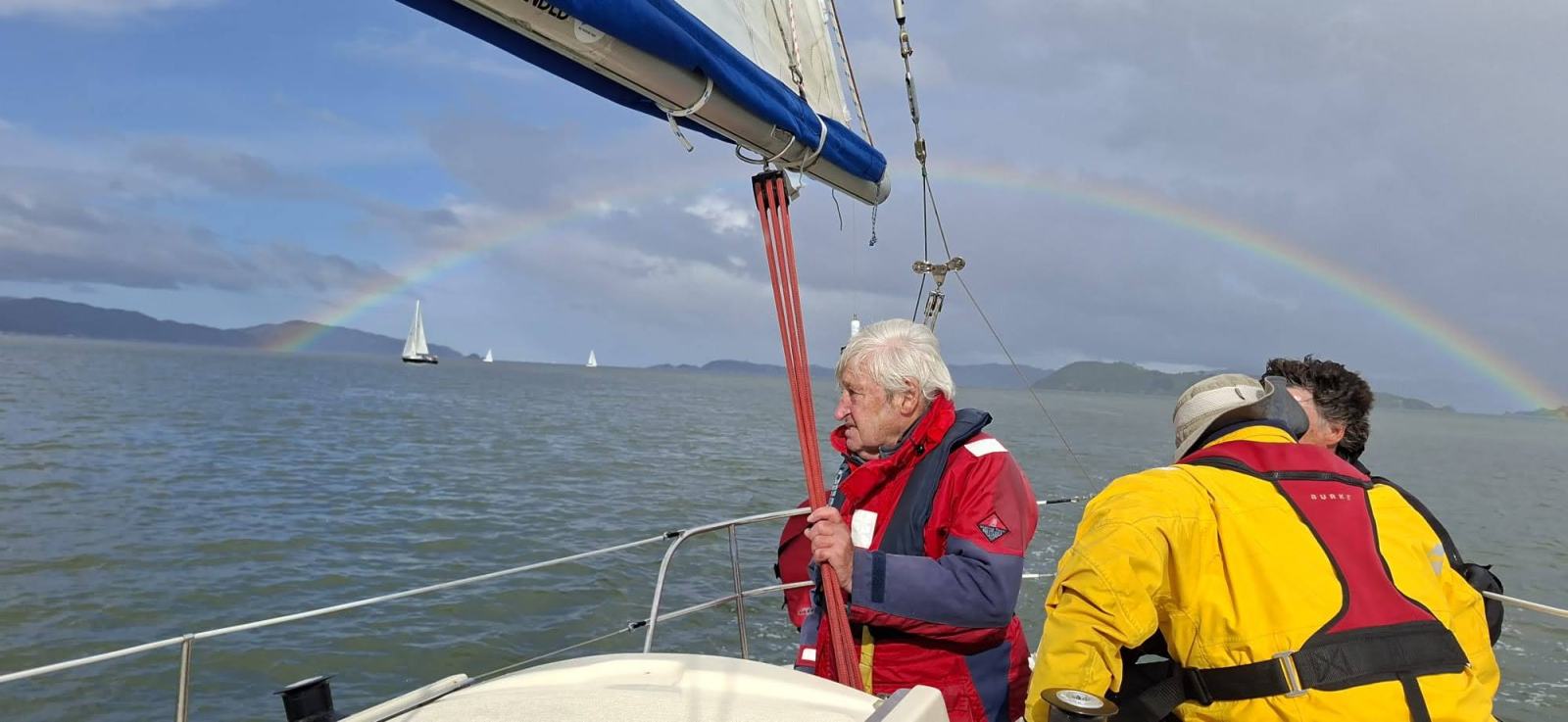 The sun came out again as we enjoyed views of a beautiful rainbow as we sailed up the harbour and around the virtual mark north of Mokopuna Island. Great photos Eduardo!