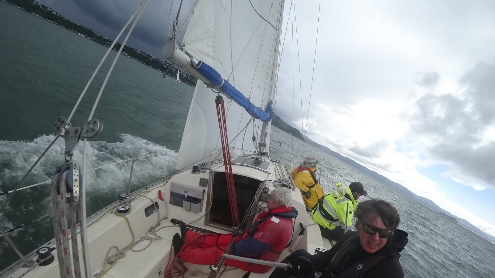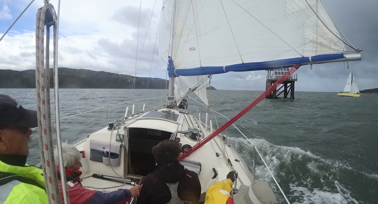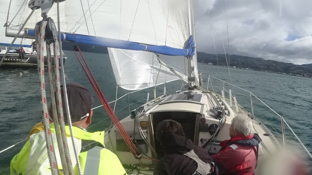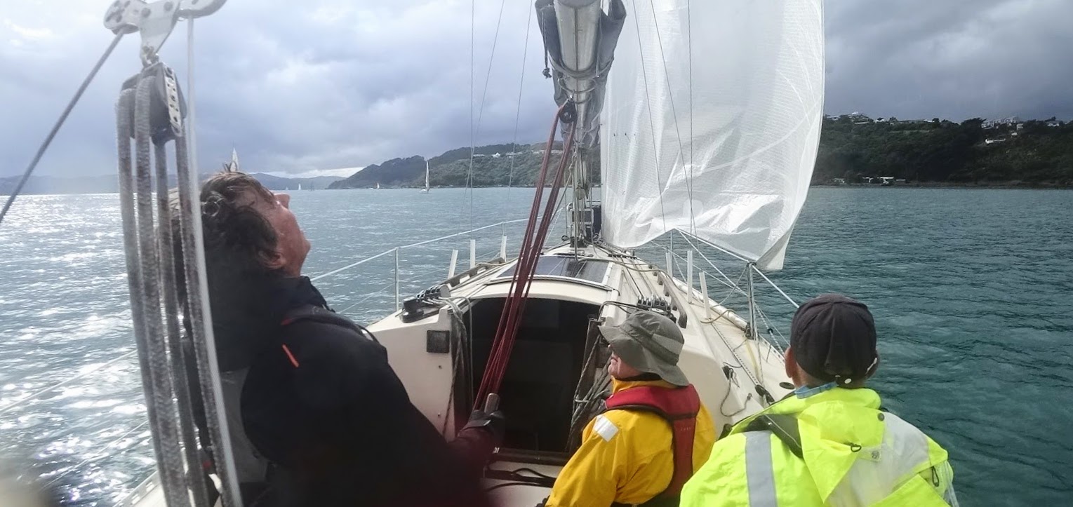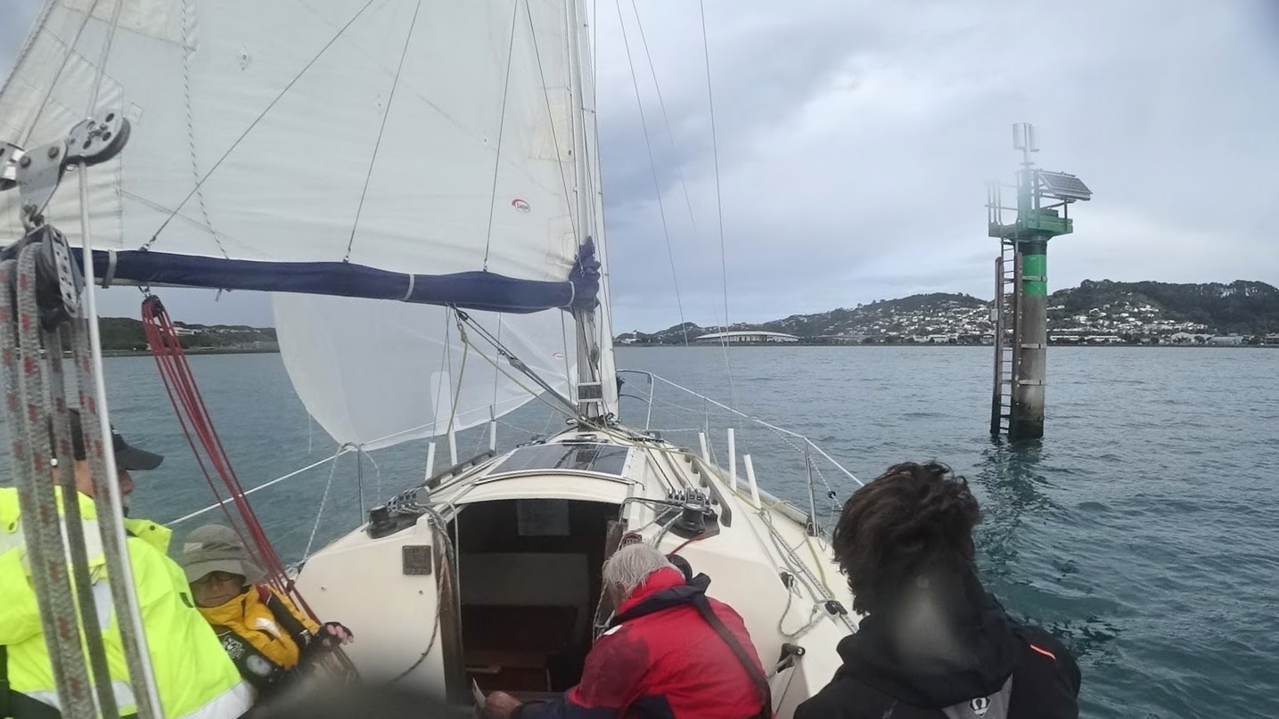 As we rounded Pt Halswell and entered Evans Bay the wind was getting over 25 kts and then the rain came. Torrential rain that felt like hail. Lovely!