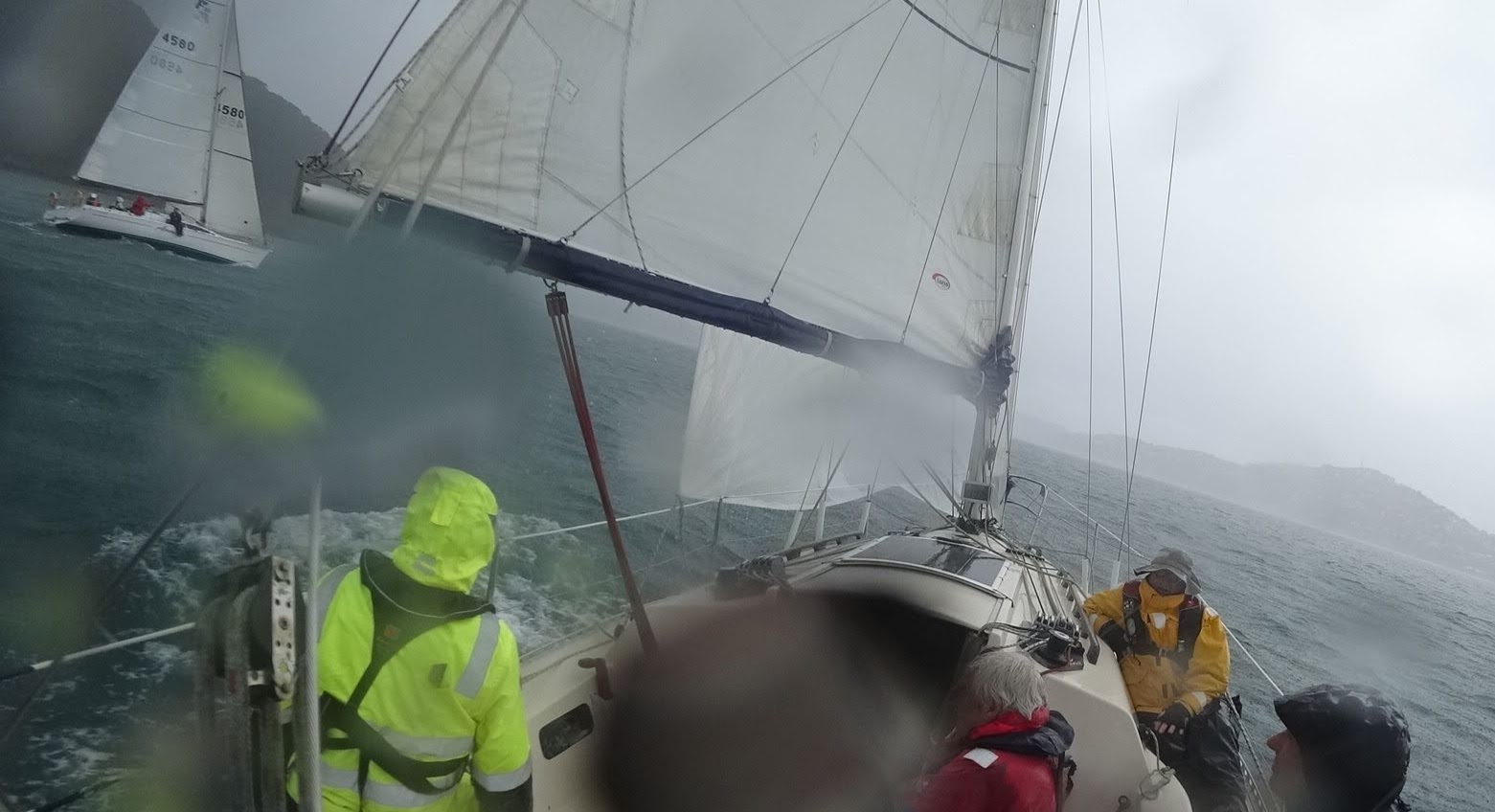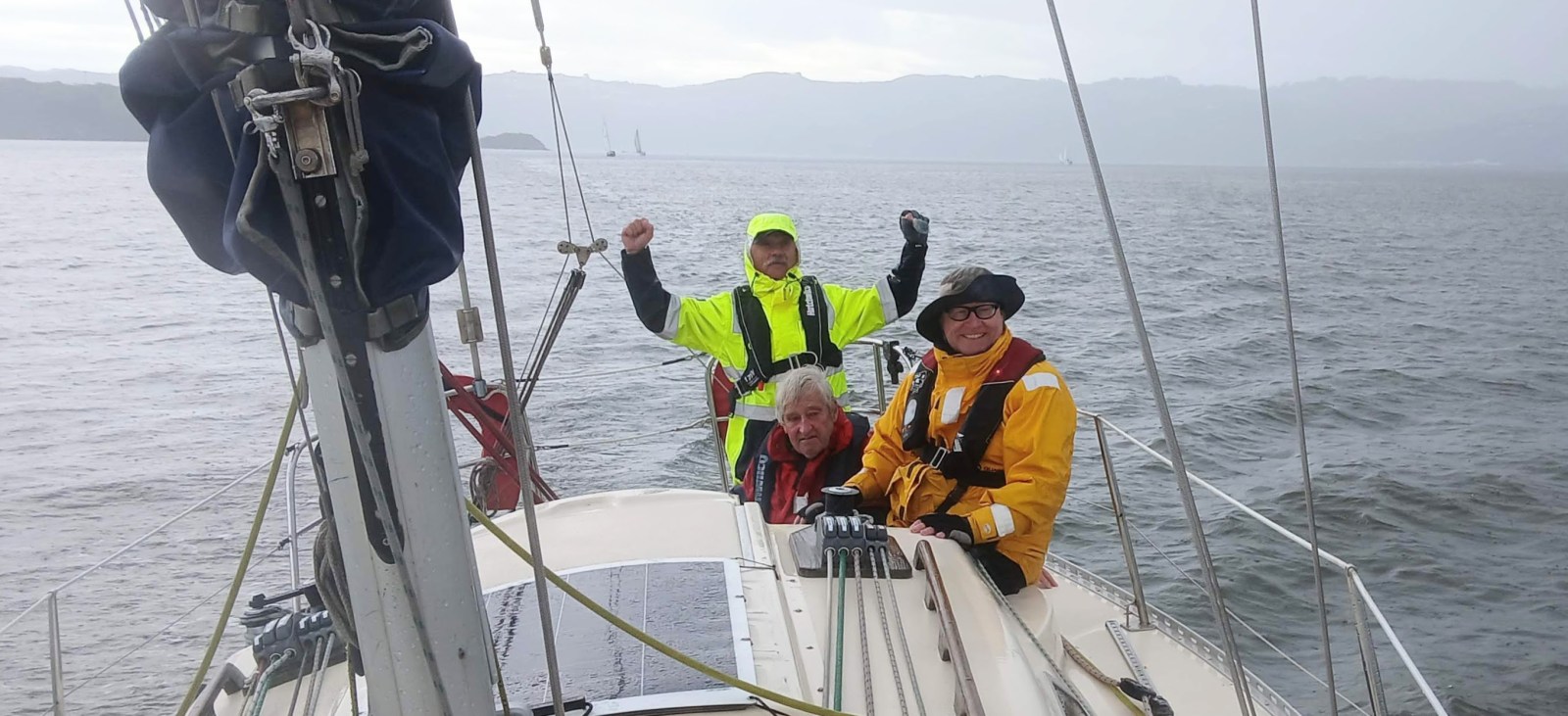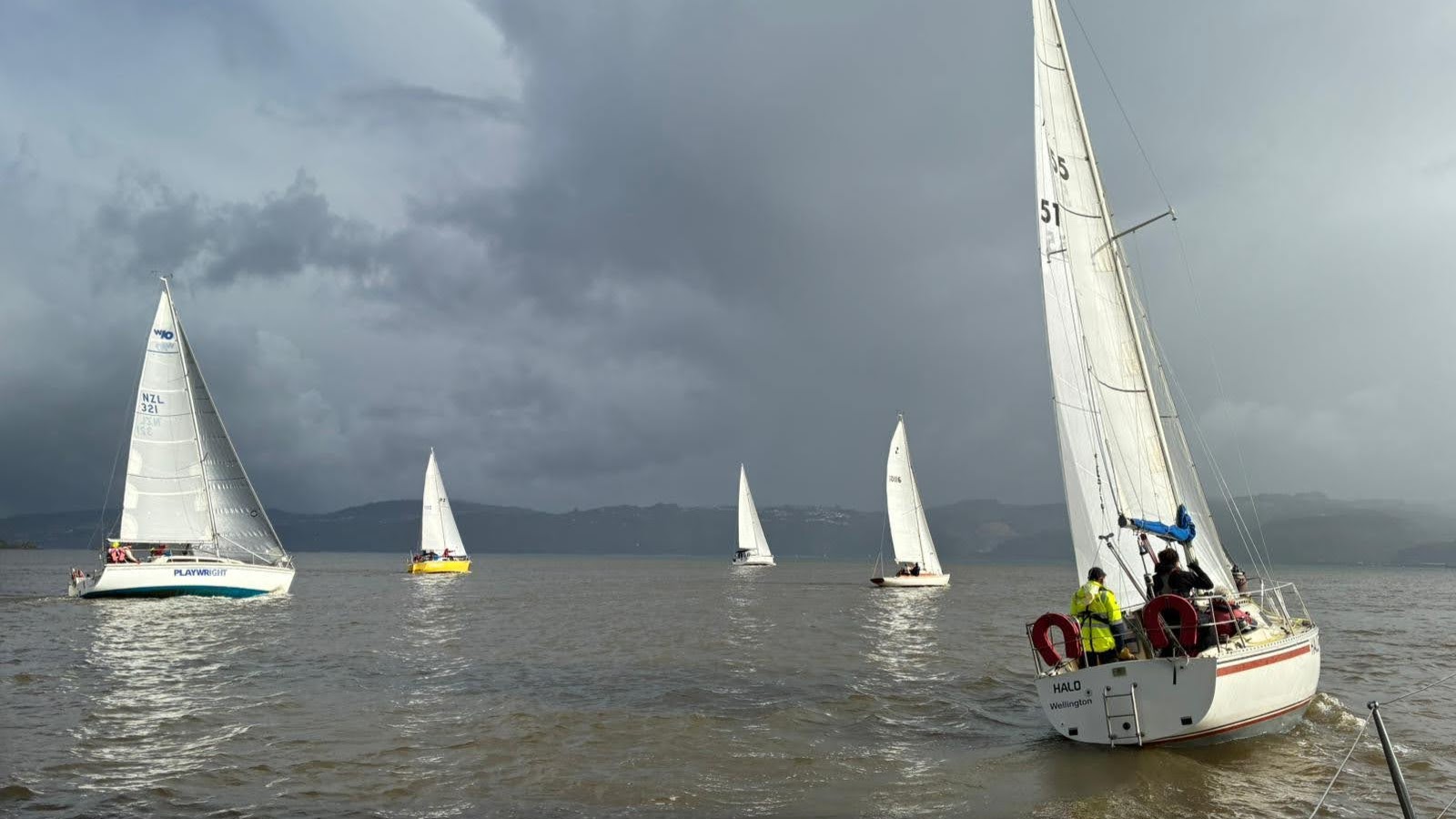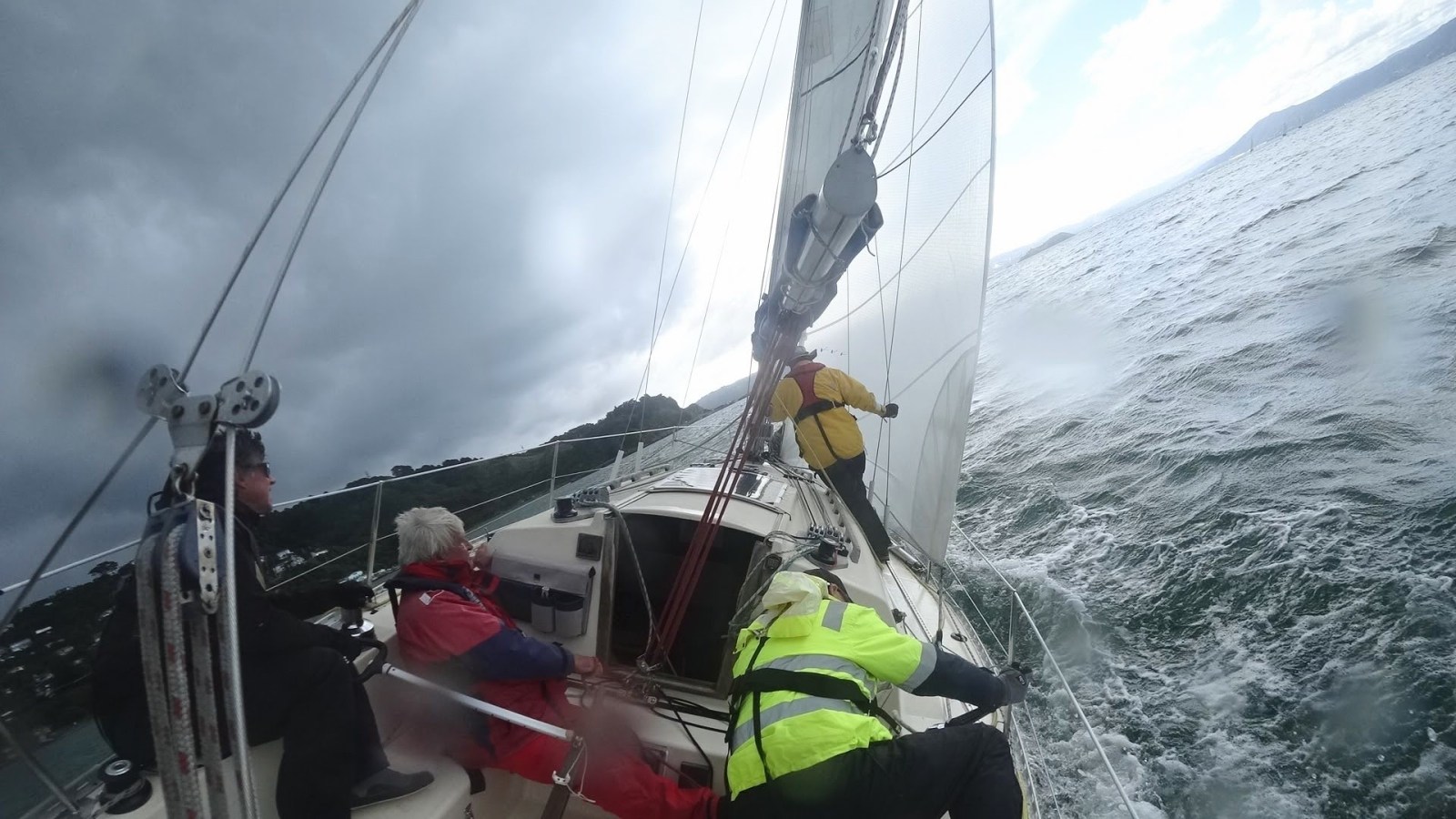 As we rounded Pt Halswell and entered Evans Bay the wind was getting over 25 kts and then the rain came. Torrential rain that felt like hail. Lovely!