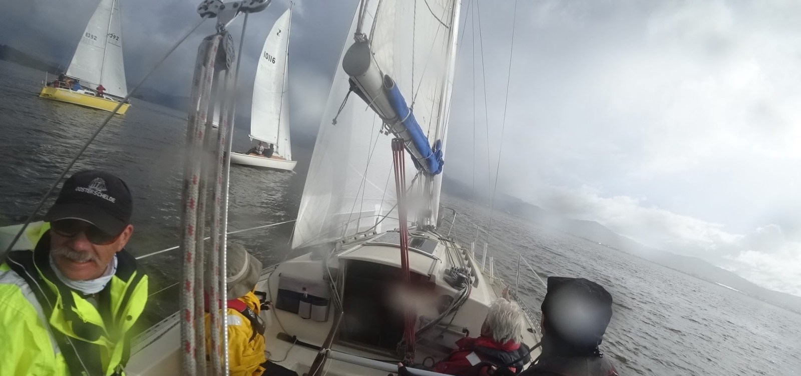 After gybing around the the mark we were then beating into the northerly, still behind most of the fleet.