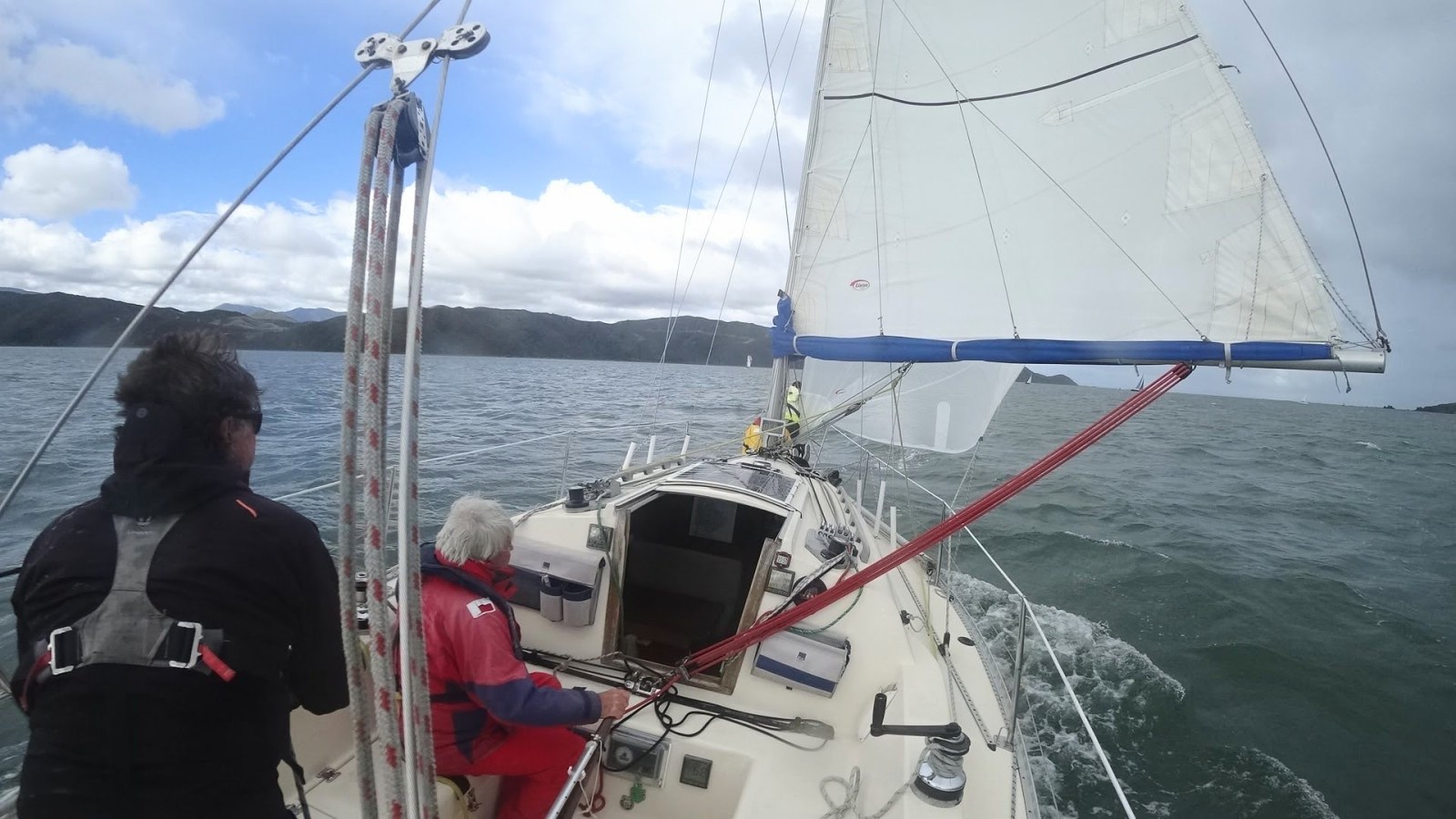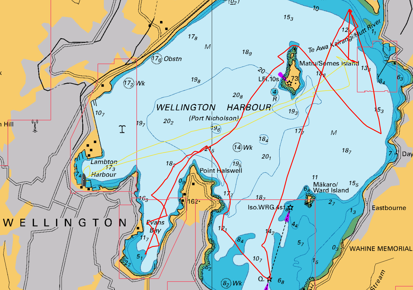 We tacked just off Karaka Bay then, surprisingly, the wind veered to the northwest. We now sailed directly north up past Kau Point to Pt Halswell in about 15 kts of wind. In the process we passed about five boats who had tacked eastwards out into the harbour.