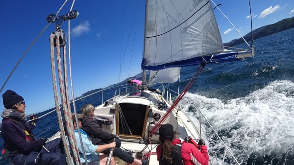 Crew: Marion (helm), Jane (mainsheet and keys), Katherine and Cloe (sail trim), Meredith (bow). Forecast: Southerly 10 kts rising to 15 kts. In preparation for the Wellington Women's Regatta next week Marion was keen to take the crew out for a practice sail. We all met up at Chaffers Marina. After fitting life jackets and... Continue Reading →