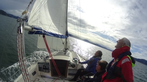 Crew: Geoff, Graciela, Jenny, Isabelle and Max. Today: Southerly 15 knots, easing to 10 knots this afternoon. Becoming northerly 10 knots this evening. Sea slight. Cloudy periods. First time this season taking out Isabelle and Max on Halo. We departed Chaffers Dock at 1245 hrs and hoisted the Mainsail and No. 2 Jib. With Graciela on... Continue Reading →
