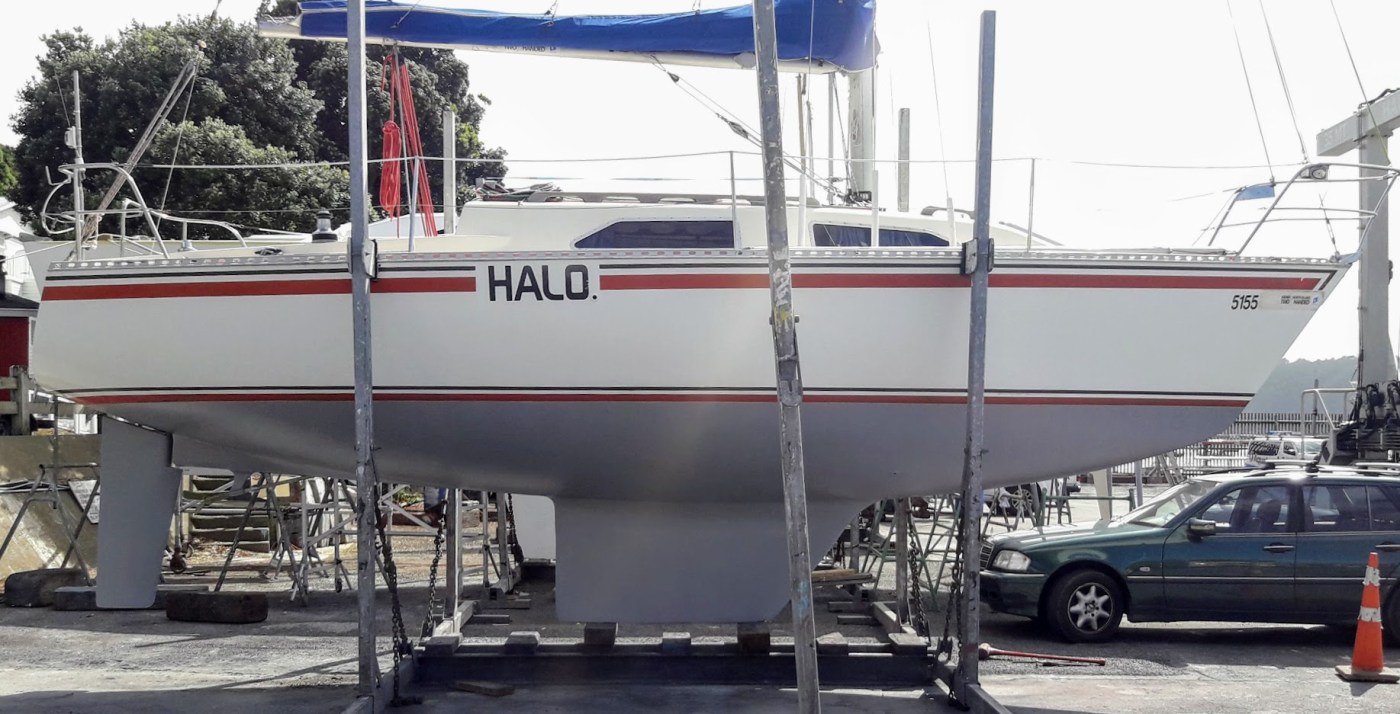 Halo is a Whiting 29 masthead sloop designed by Paul Whiting and launched in 1984. First owners were Mary & Dennis Sutton of Thames.